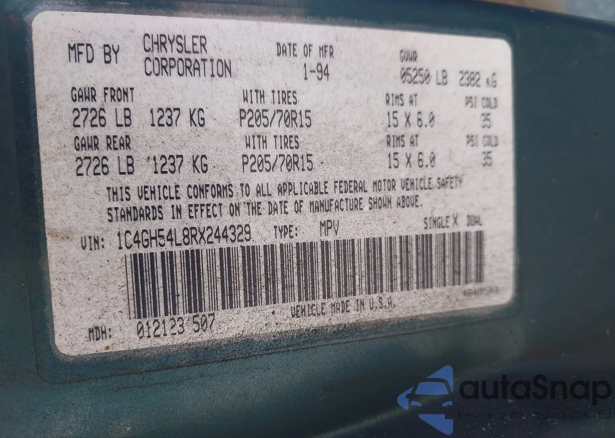 • VIN 1C4GH54L8RX244329