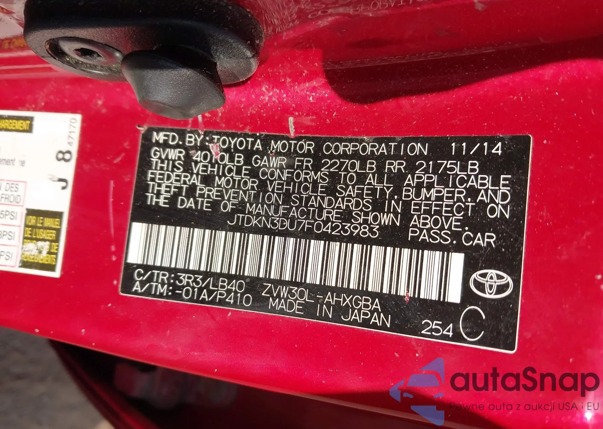 LOT: 43248447 VIN: JTDKN3DU7F0423983