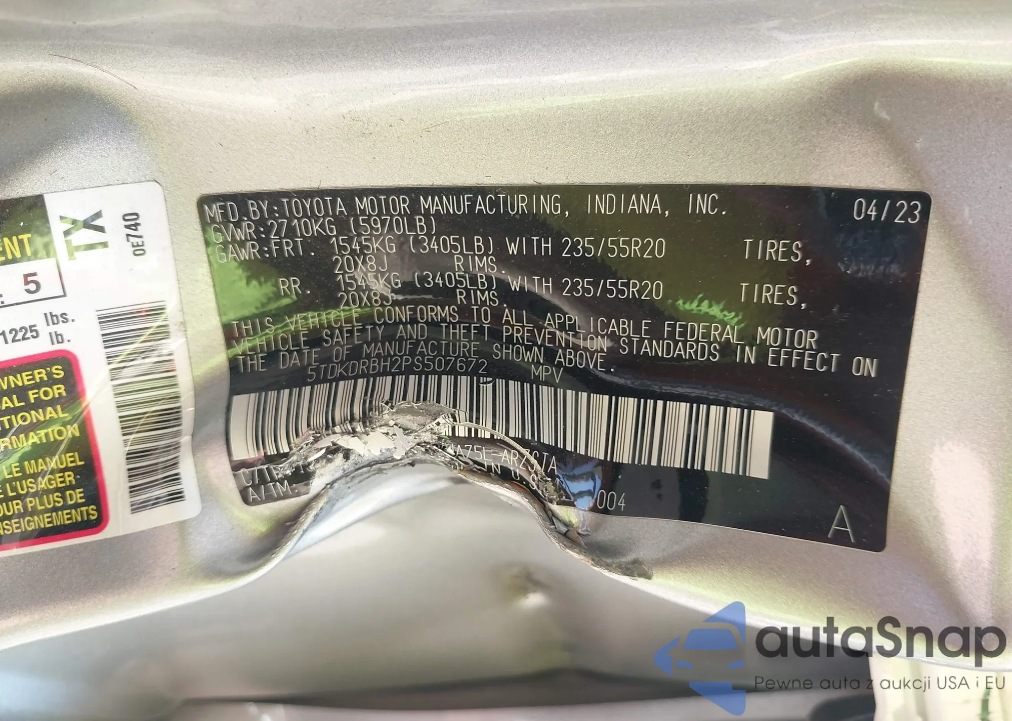 LOT: 42792008 VIN: 5TDKDRBH2PS507672