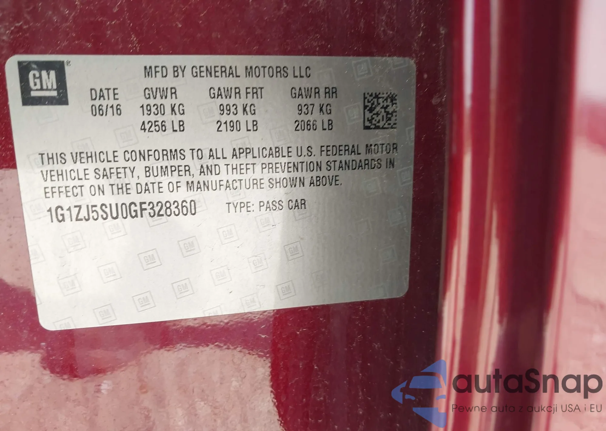 • VIN 1G1ZJ5SU0GF328360