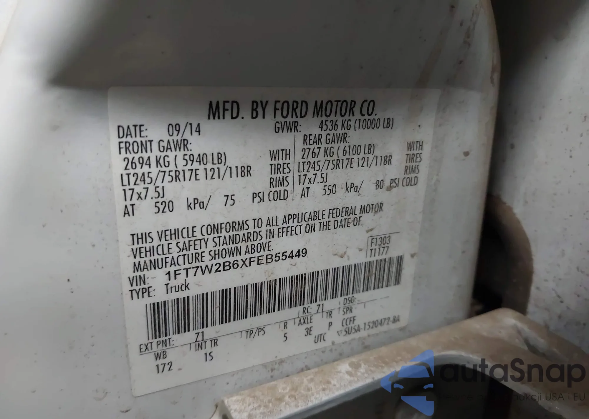 • VIN 1FT7W2B6XFEB55449