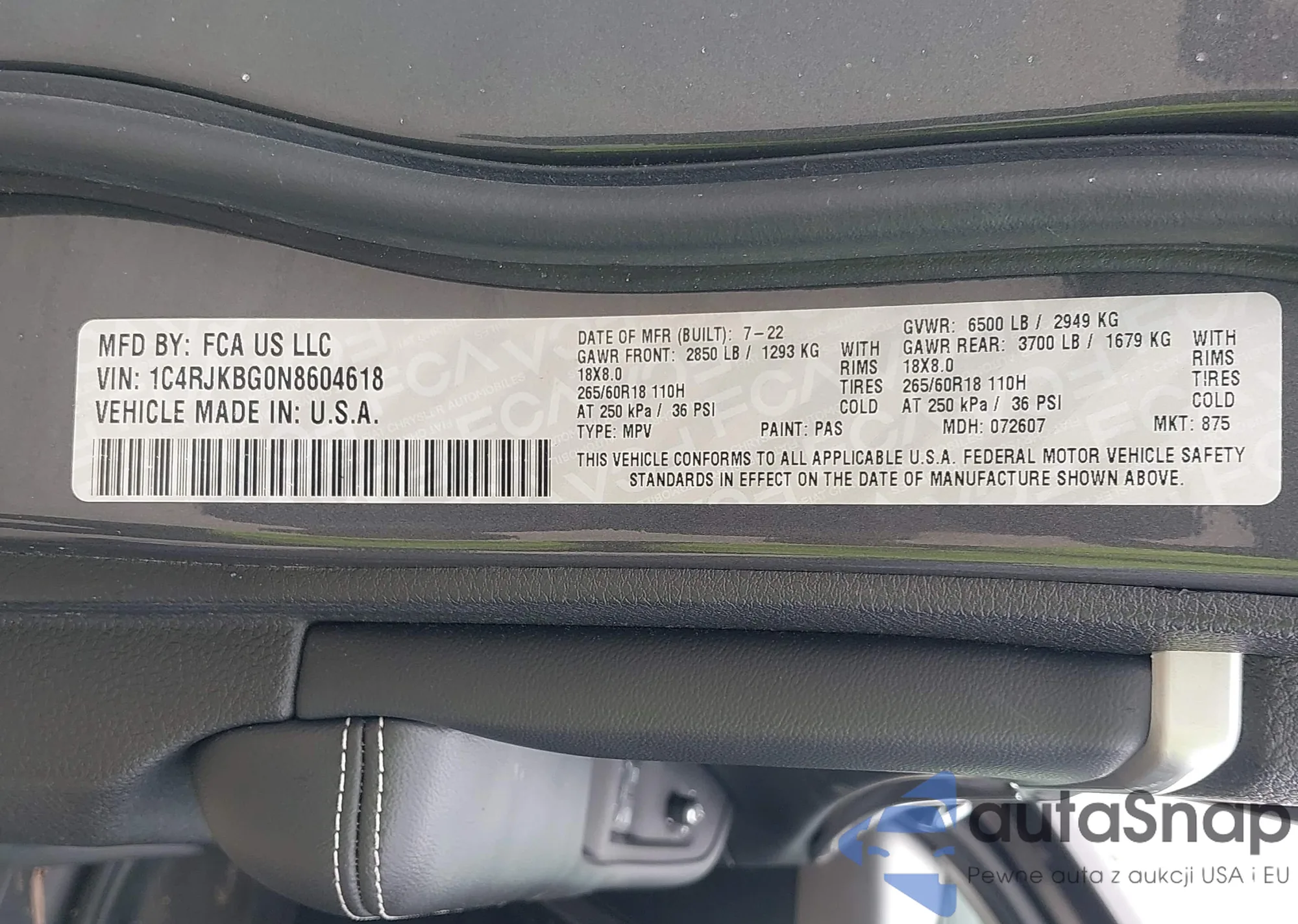 • VIN 1C4RJKBG0N8604618