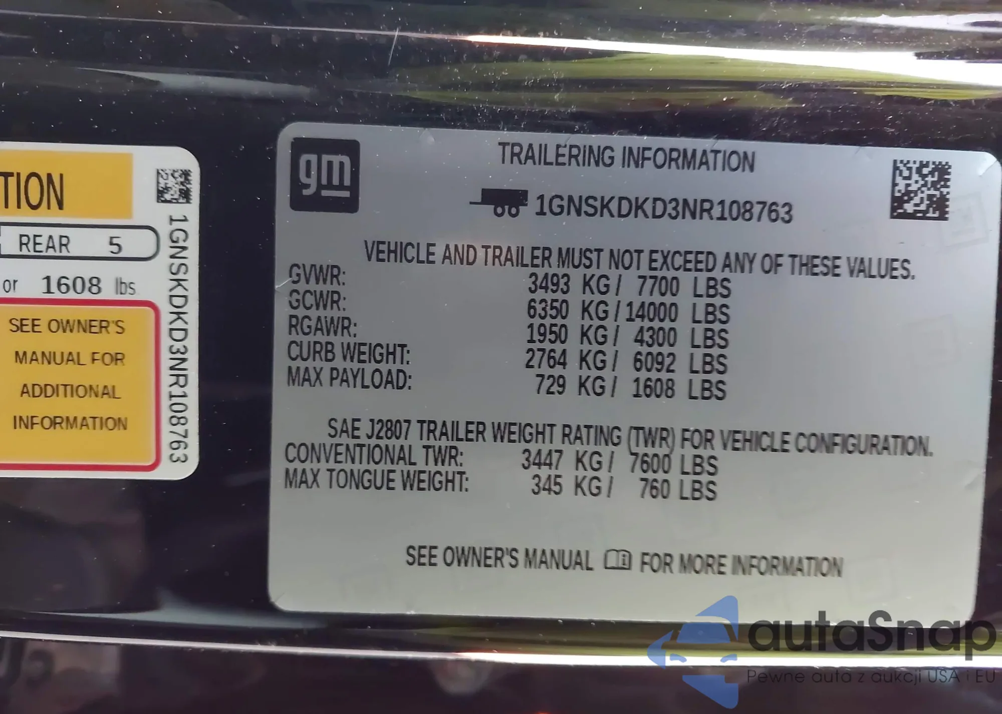 LOT: 43345623 VIN: 1GNSKDKD3NR108763