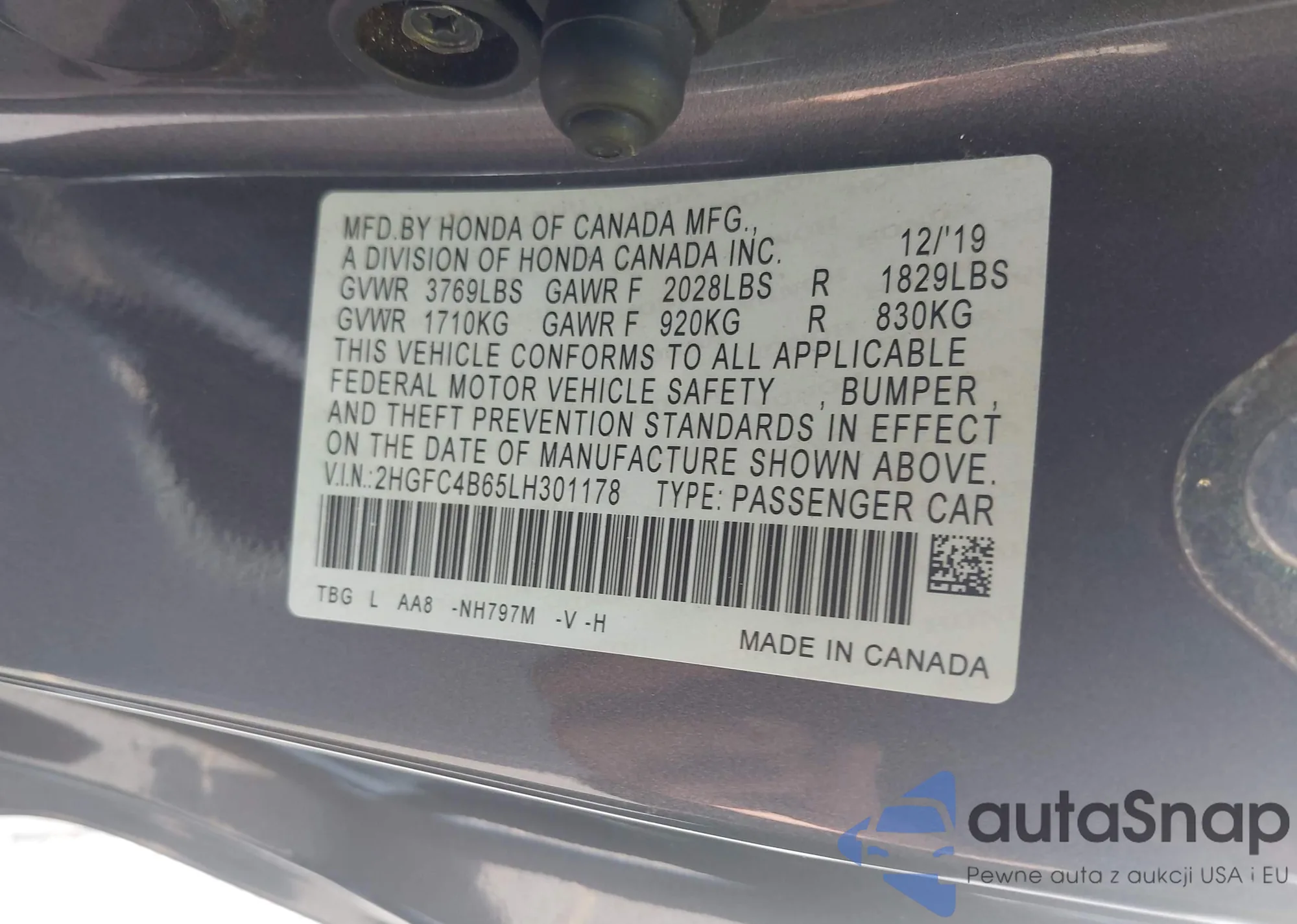 • VIN 2HGFC4B65LH301178