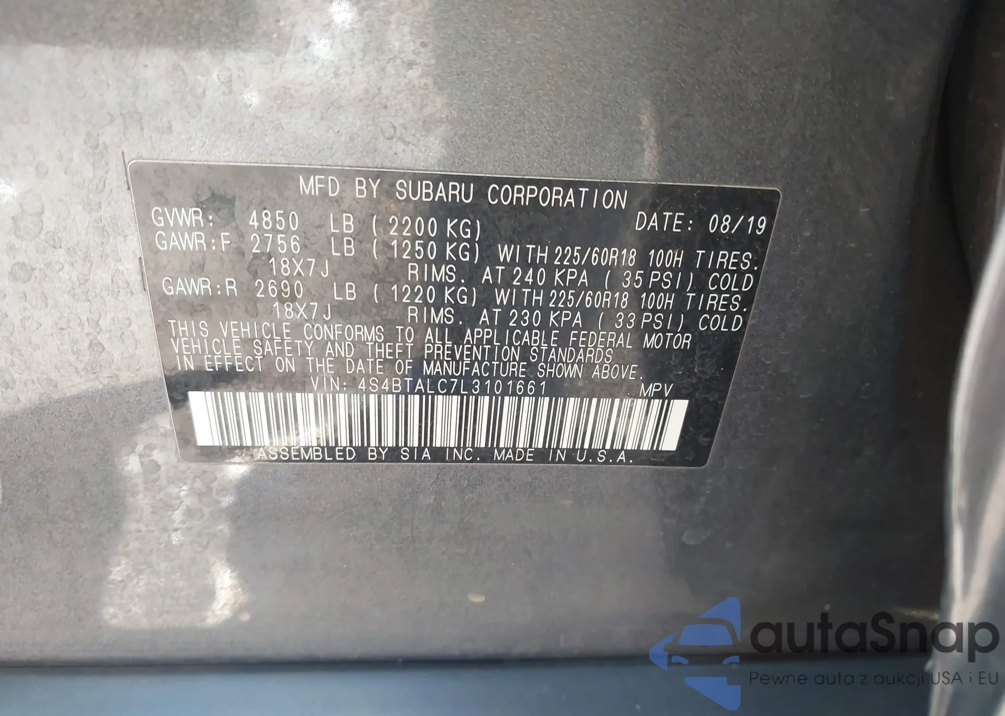 • VIN 4S4BTALC7L3101661