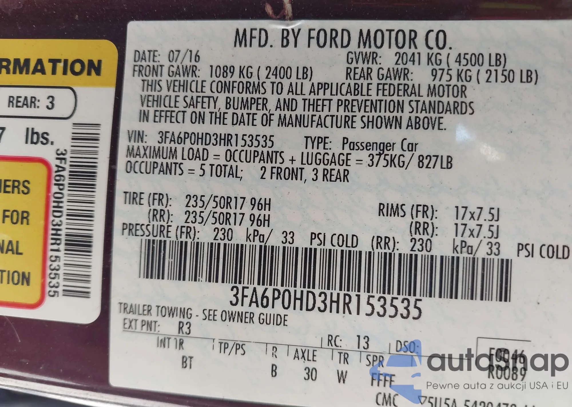 • VIN 3FA6P0HD3HR153535