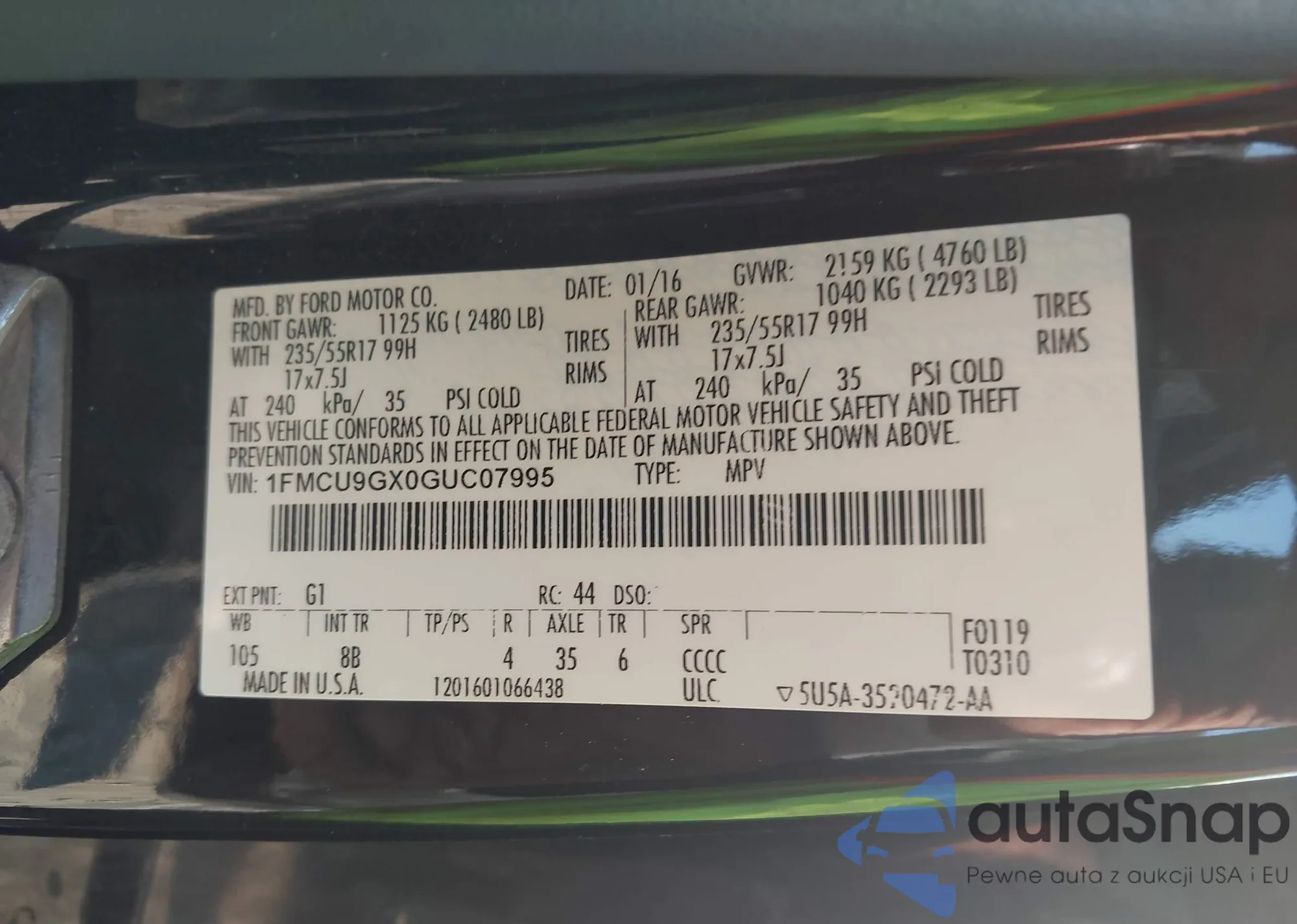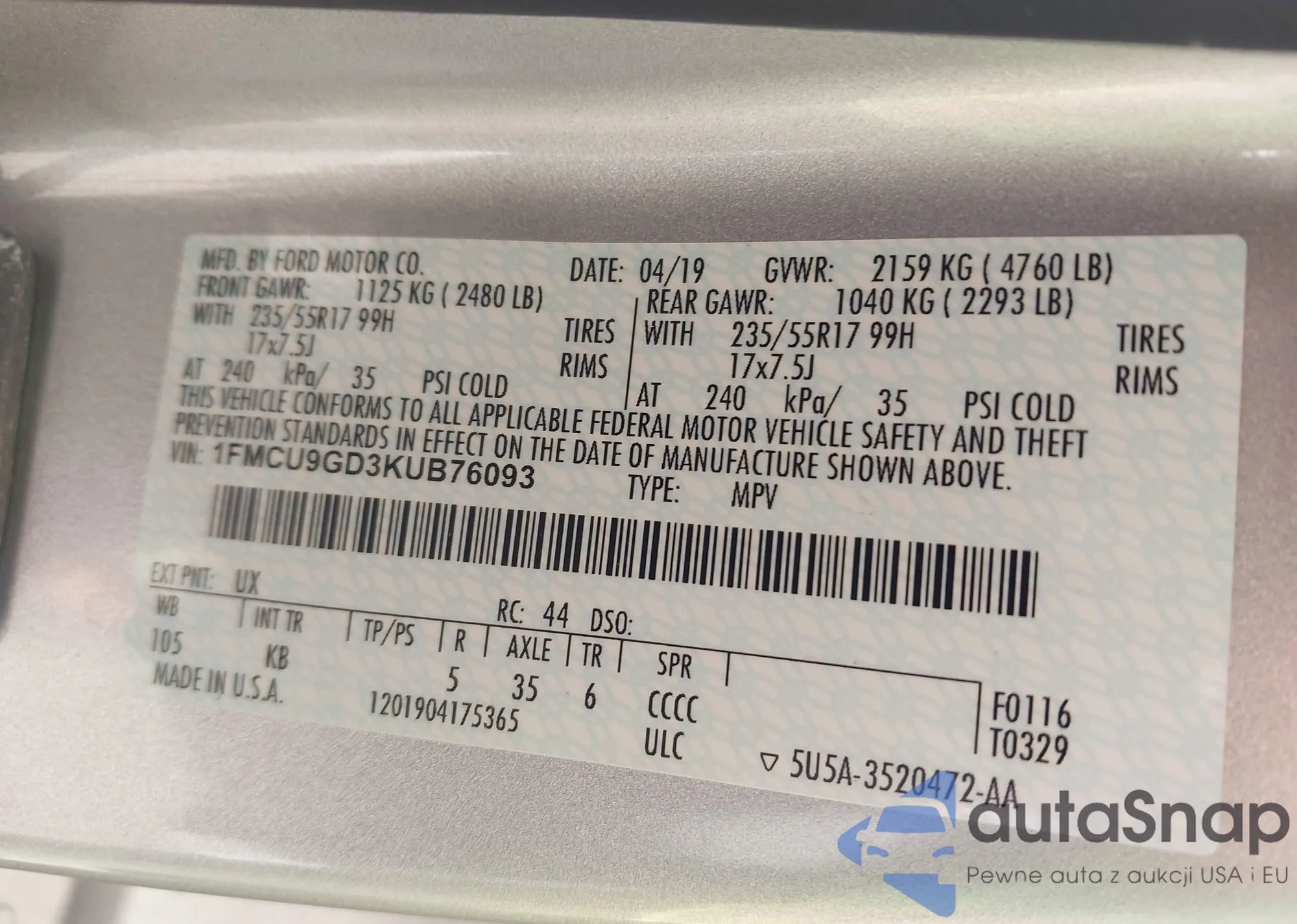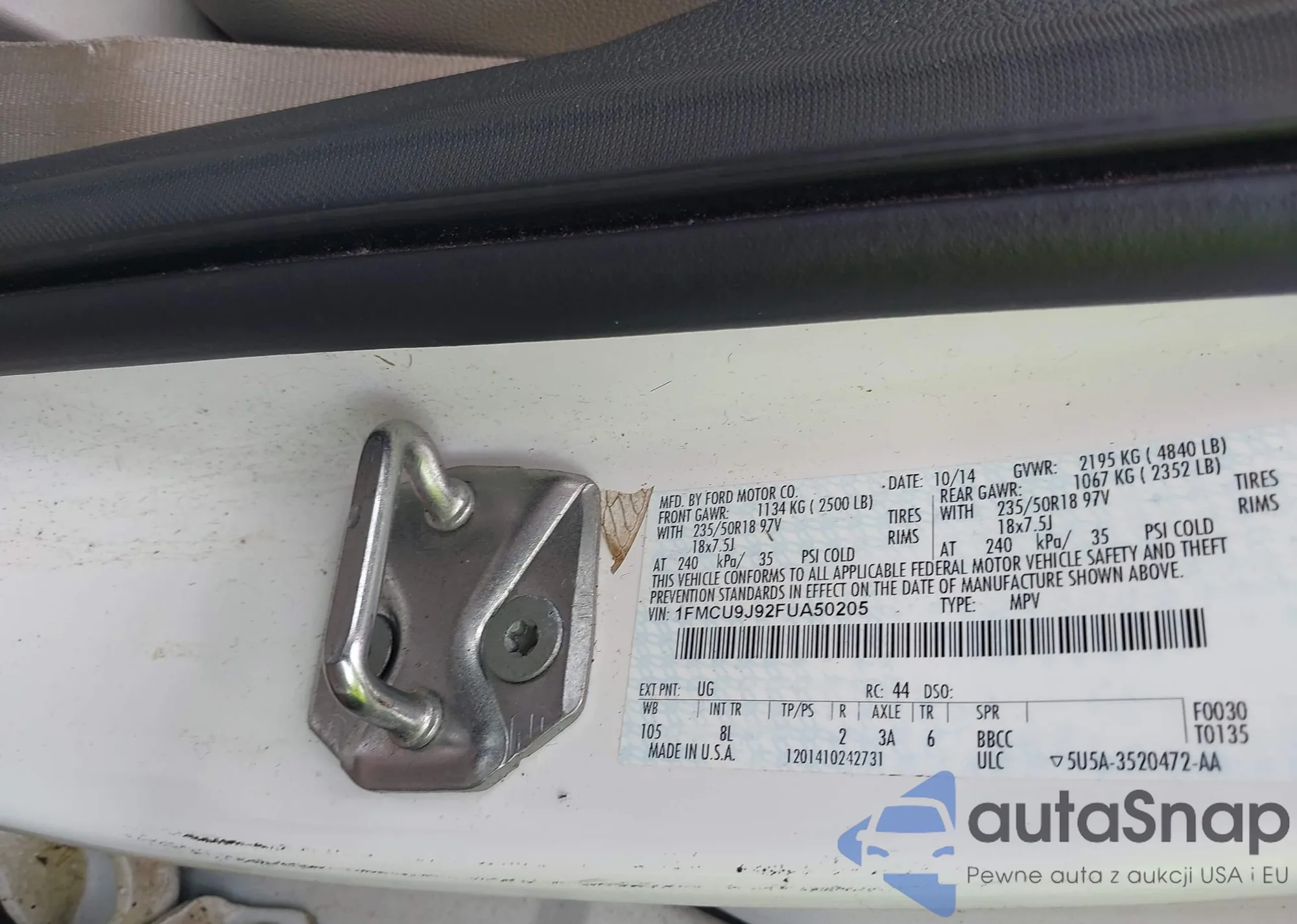 • VIN 1FMCU9J92FUA50205