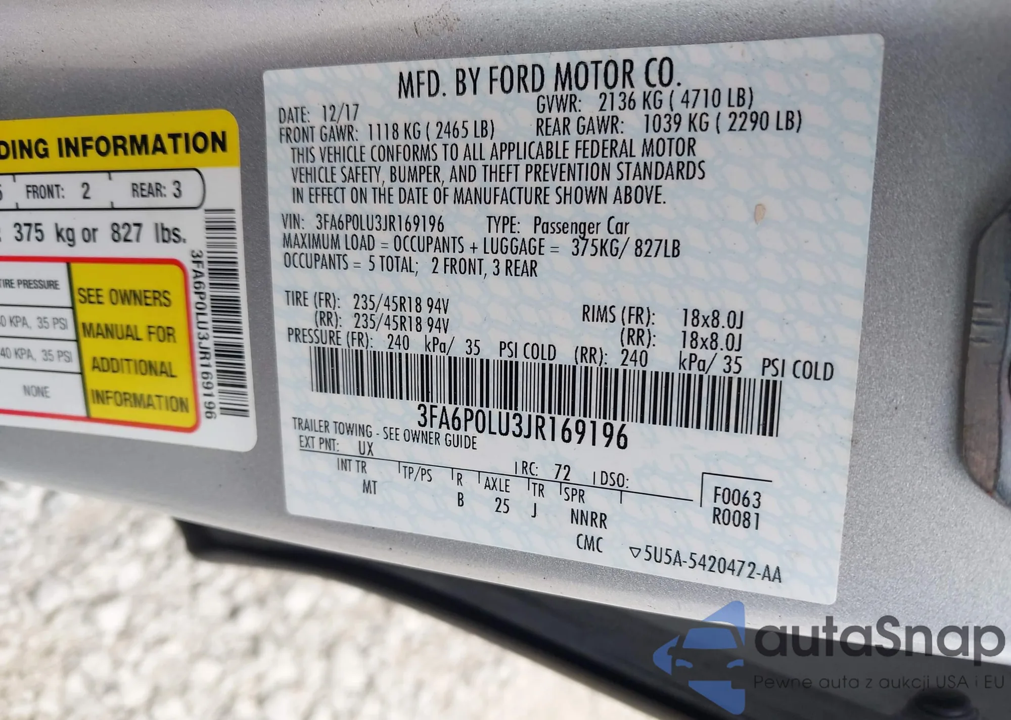 LOT: 43305465 VIN: 3FA6P0H75HR401407