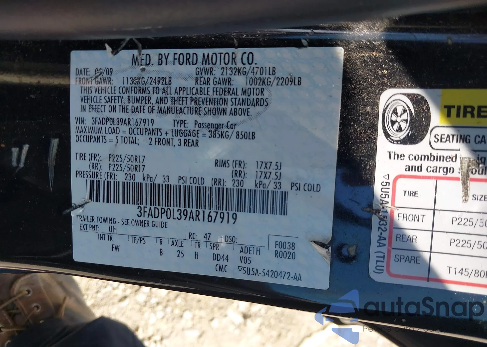• VIN 3FADP0L39AR167919