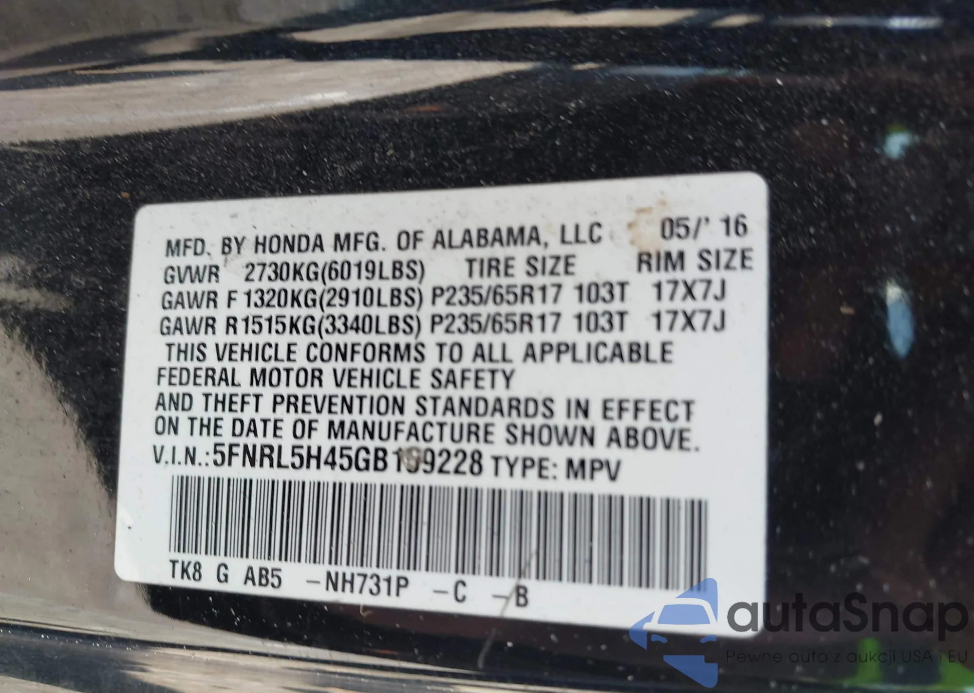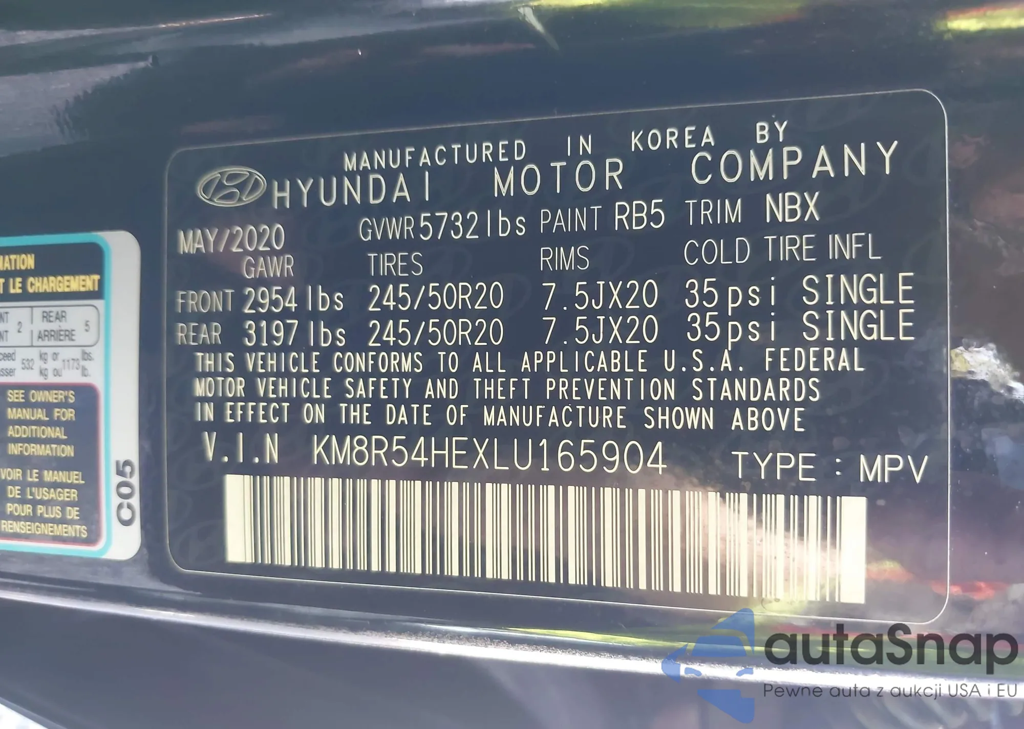 LOT: 43212051 VIN: KM8R54HEXLU165904