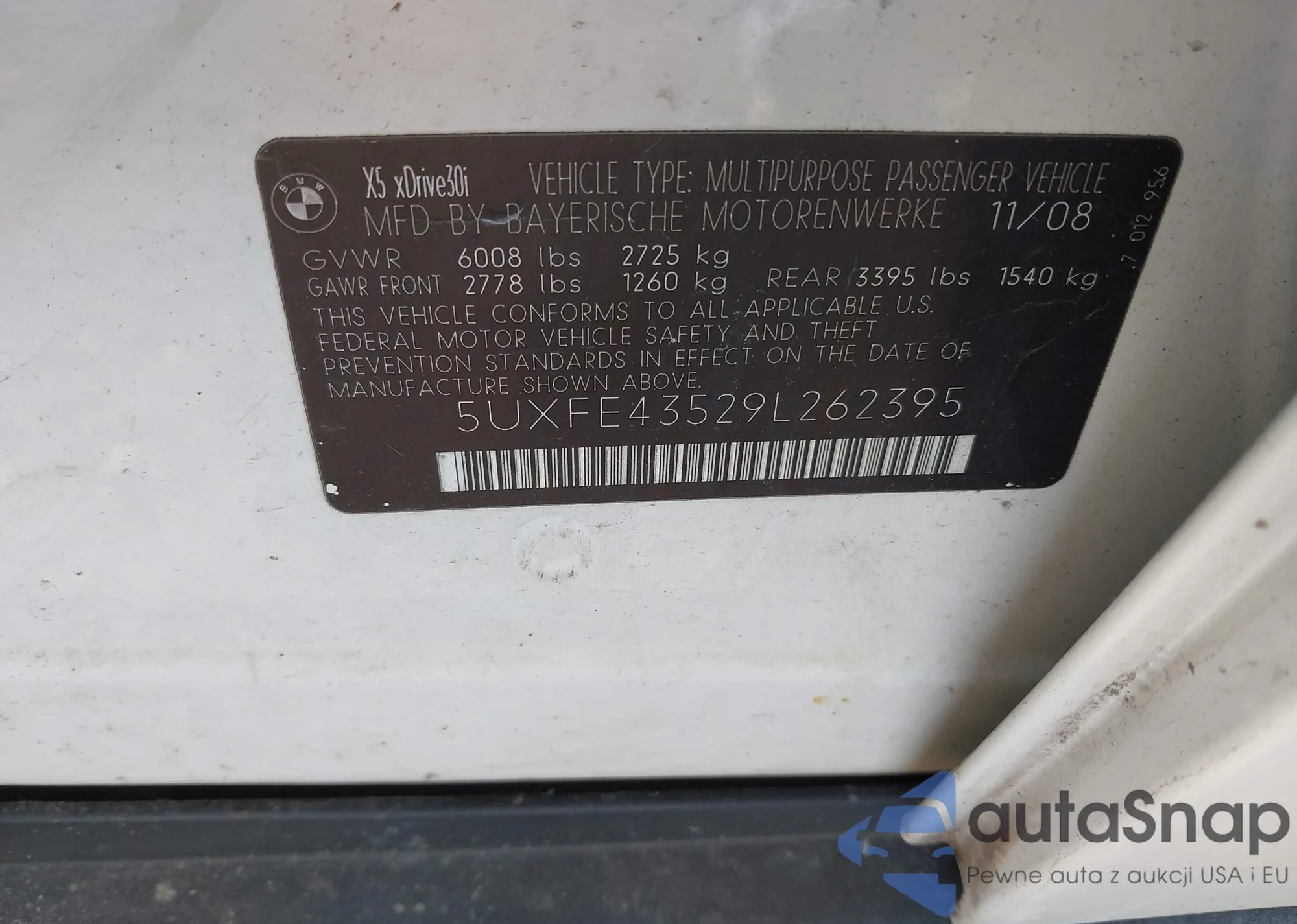 LOT: 43284036 VIN: 5UXFE43529L262395