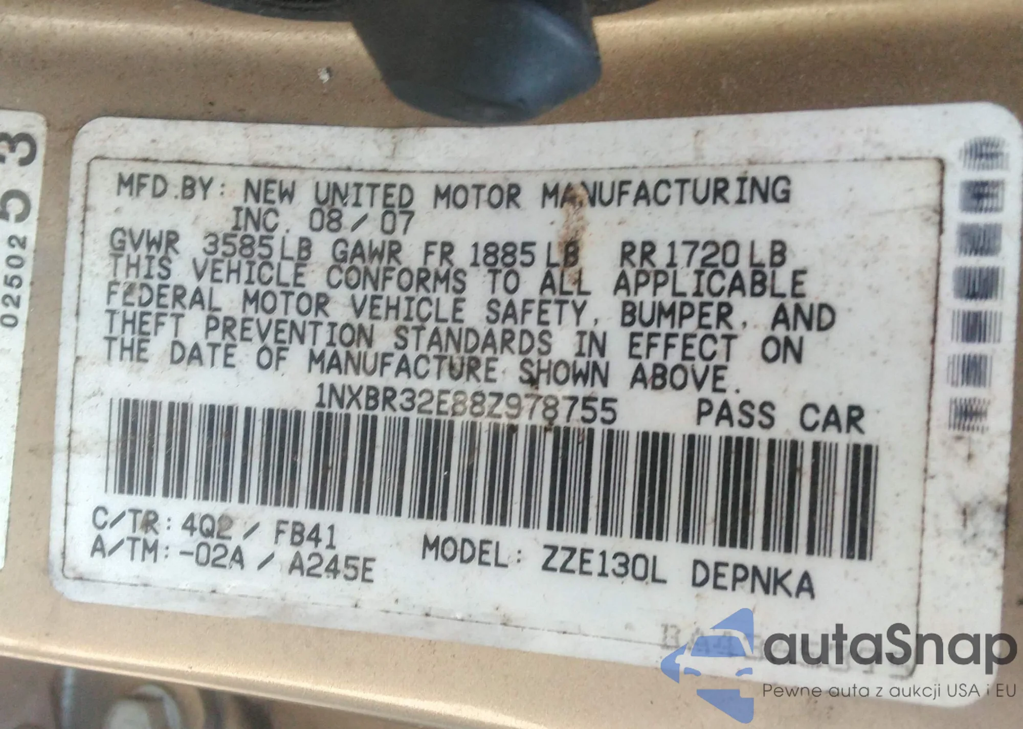 • VIN 1NXBR32E88Z978755