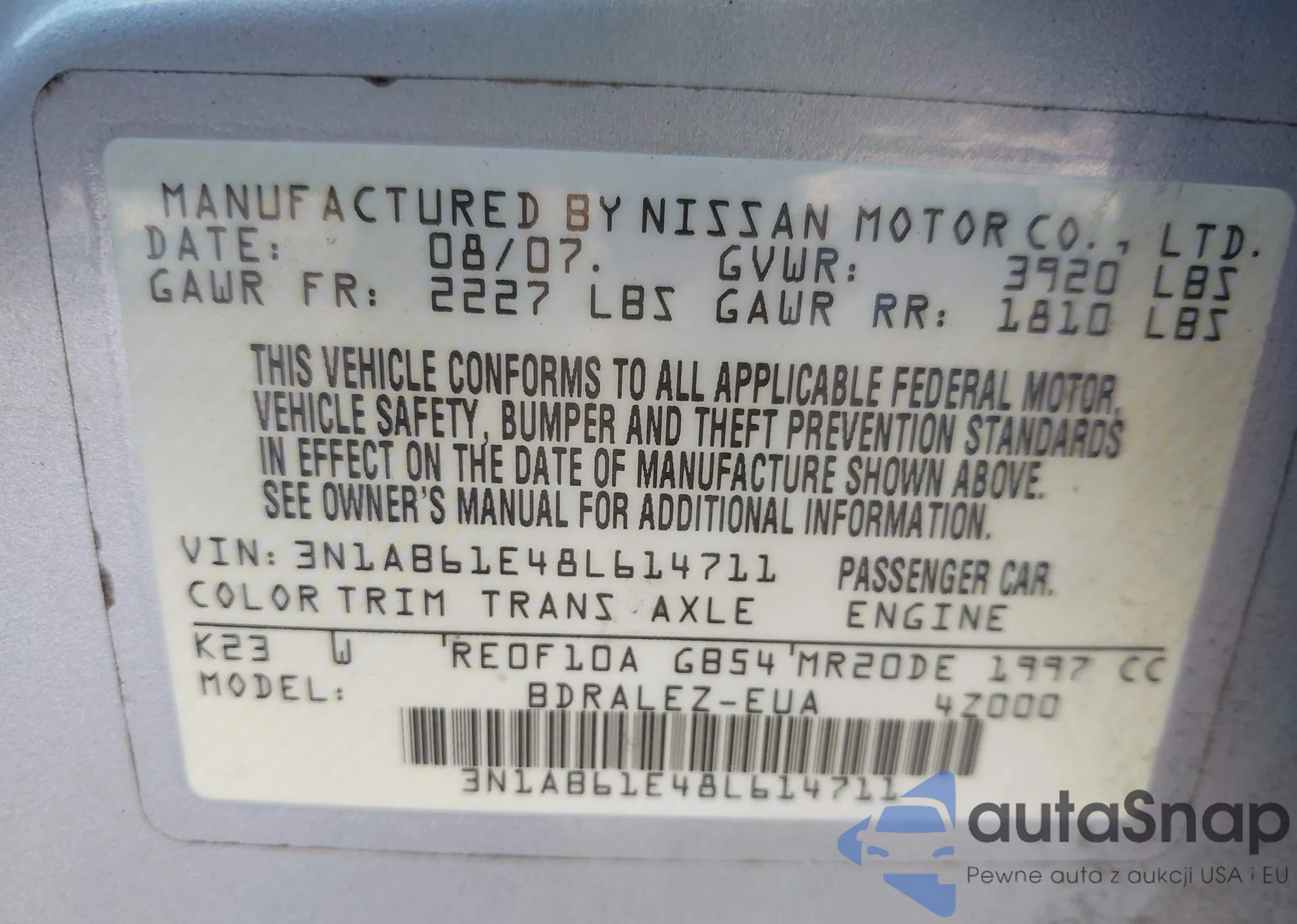 • VIN 3N1AB61E48L614711