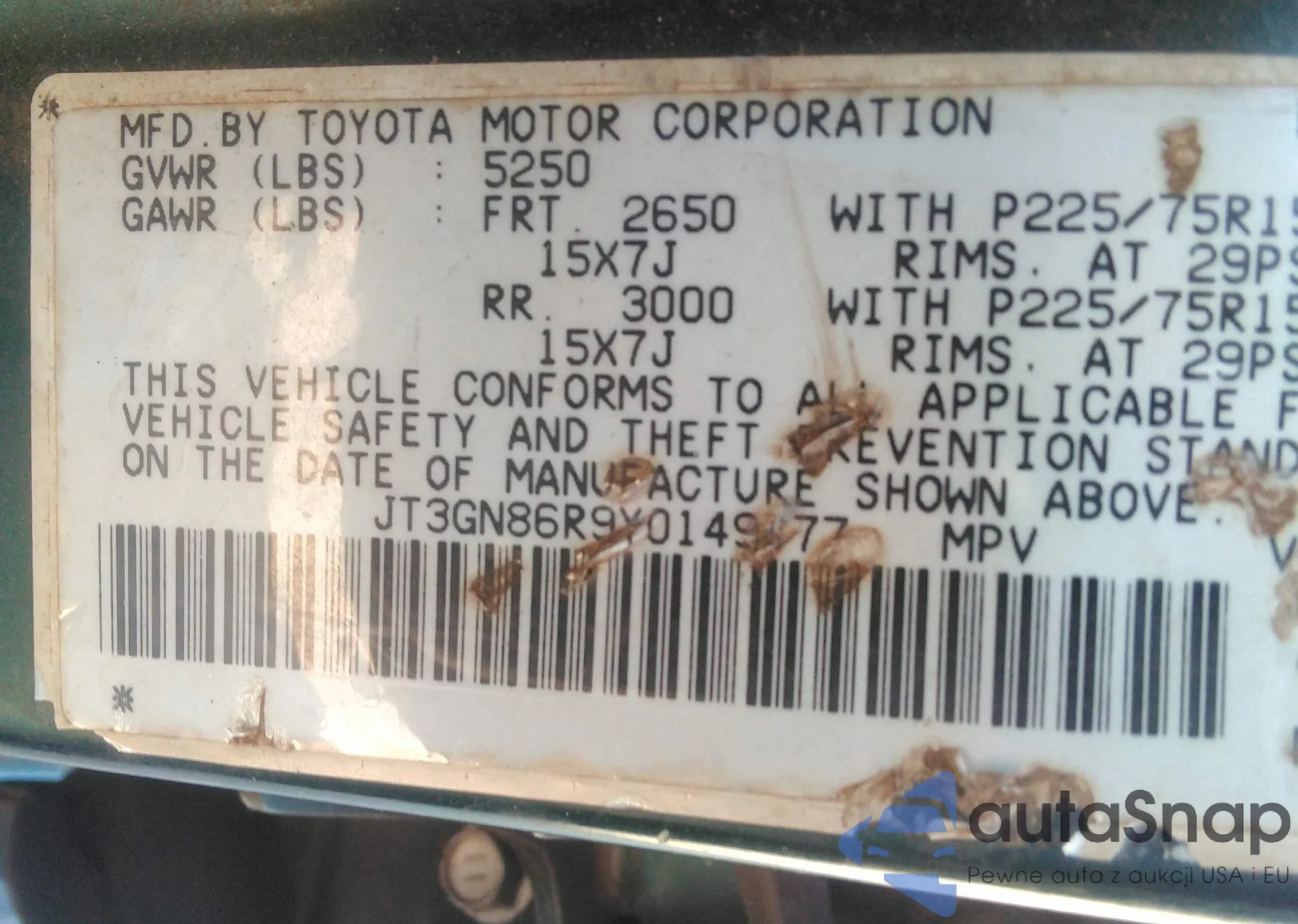 • VIN JT3GN86R9Y0149477