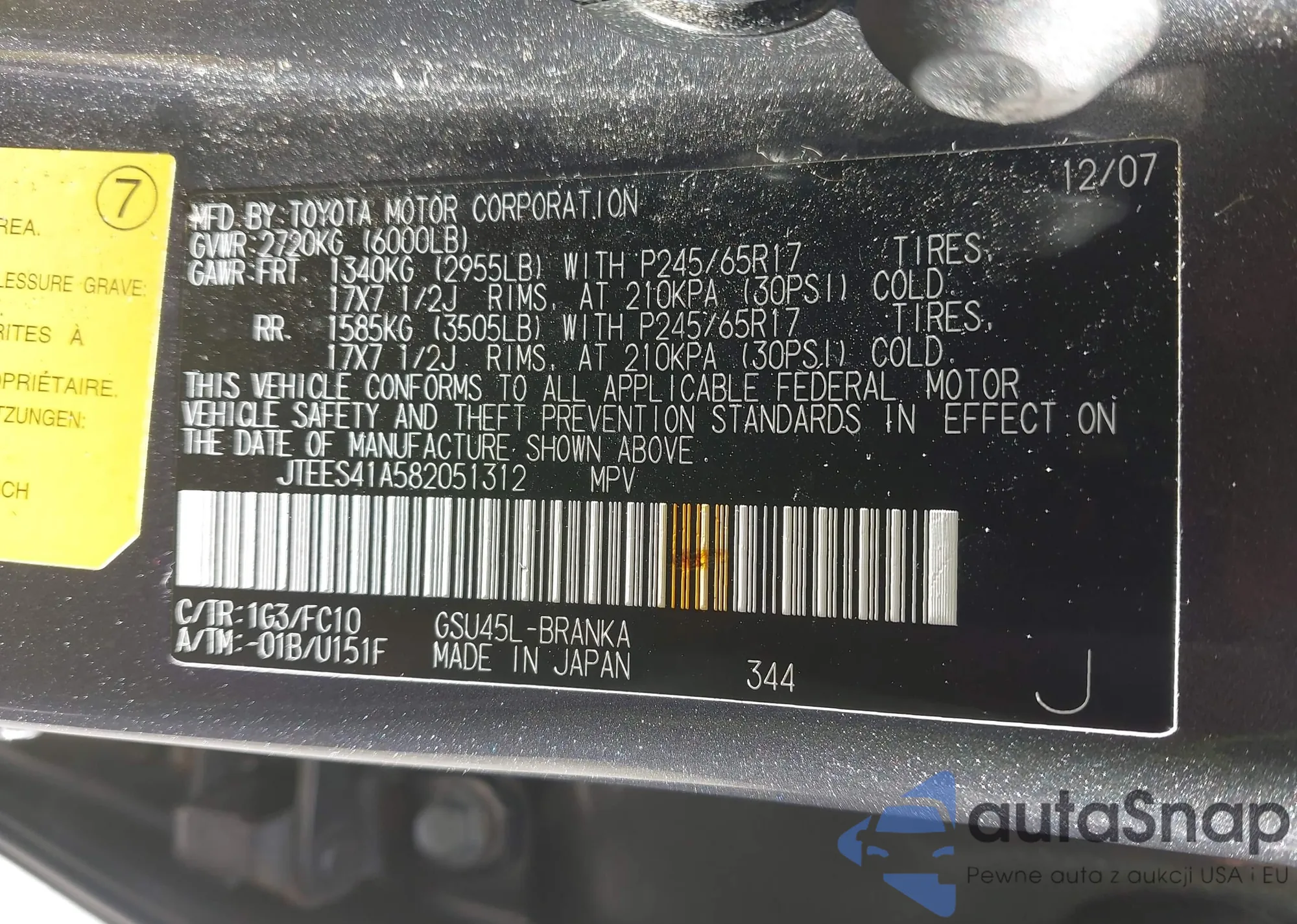• VIN JTDAT123250358748