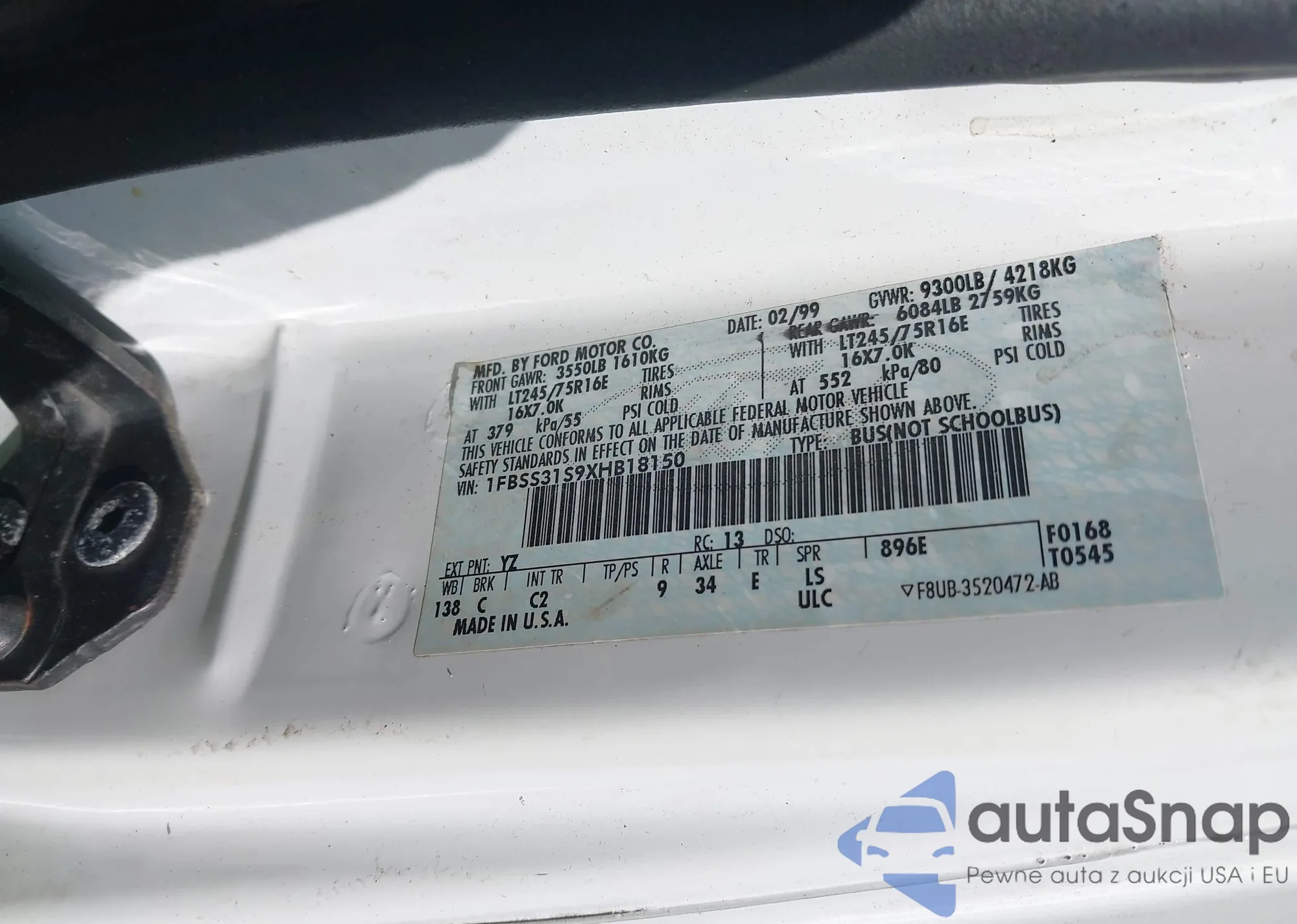 • VIN 1FBSS31S9XHB18150
