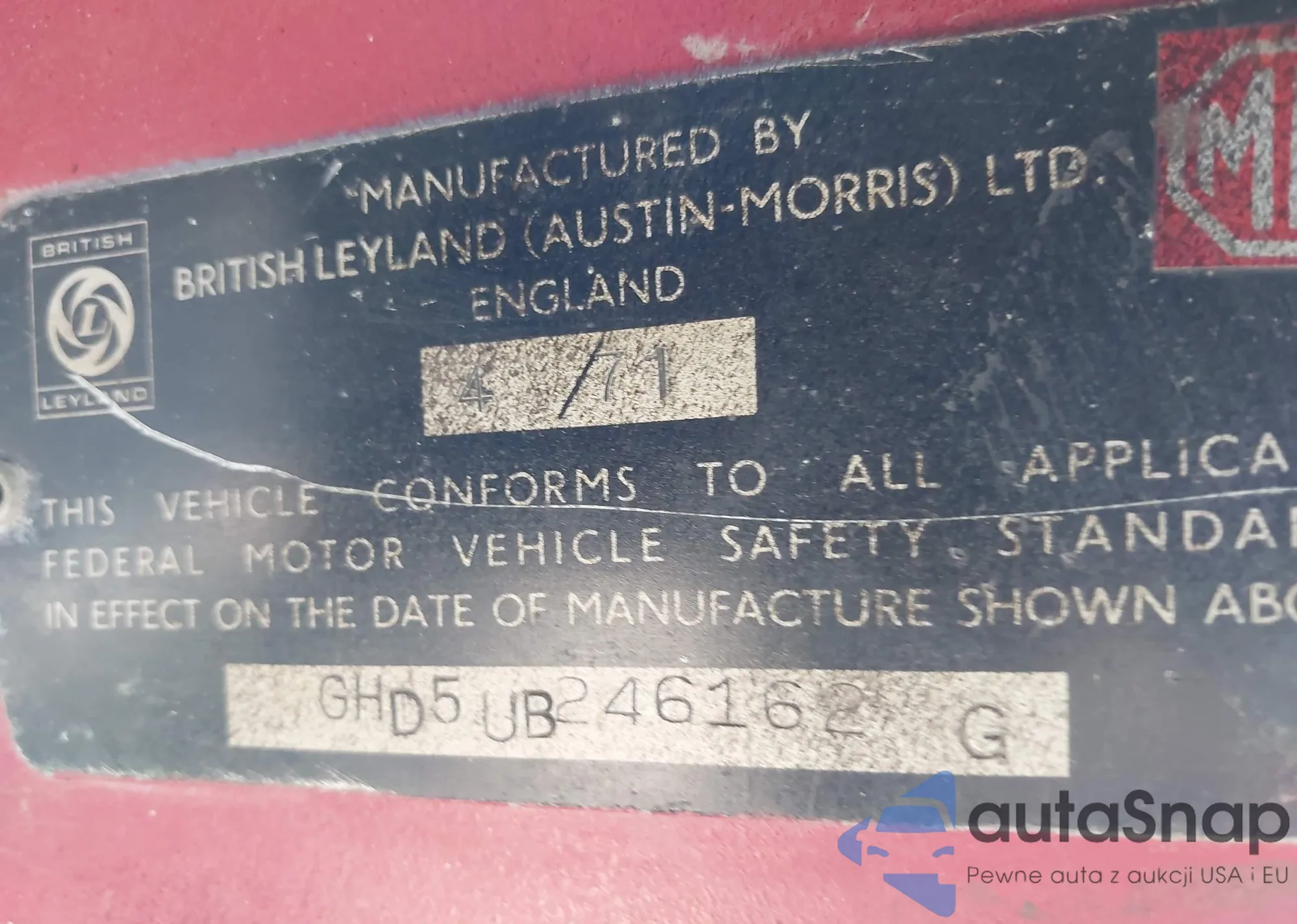 1970 Mg Mgb Gt z USA, uszkodzony, nr VIN GHD5UB246162G0000