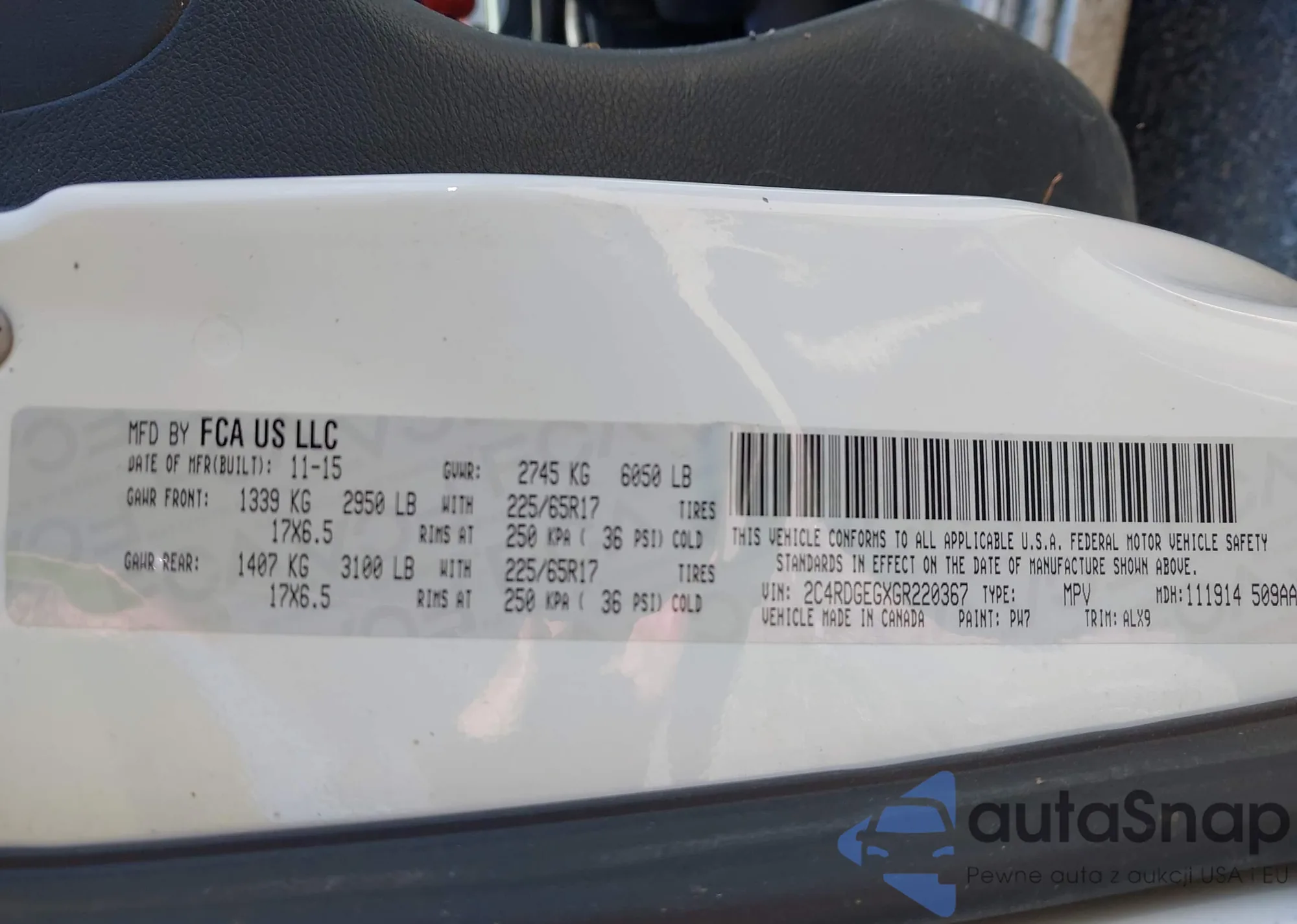 • VIN 2C4RDGEGXGR220367
