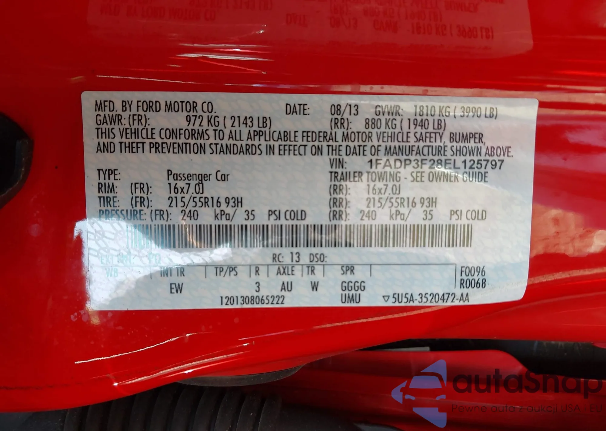 LOT: 43222061 VIN: 1FADP3F28EL125797