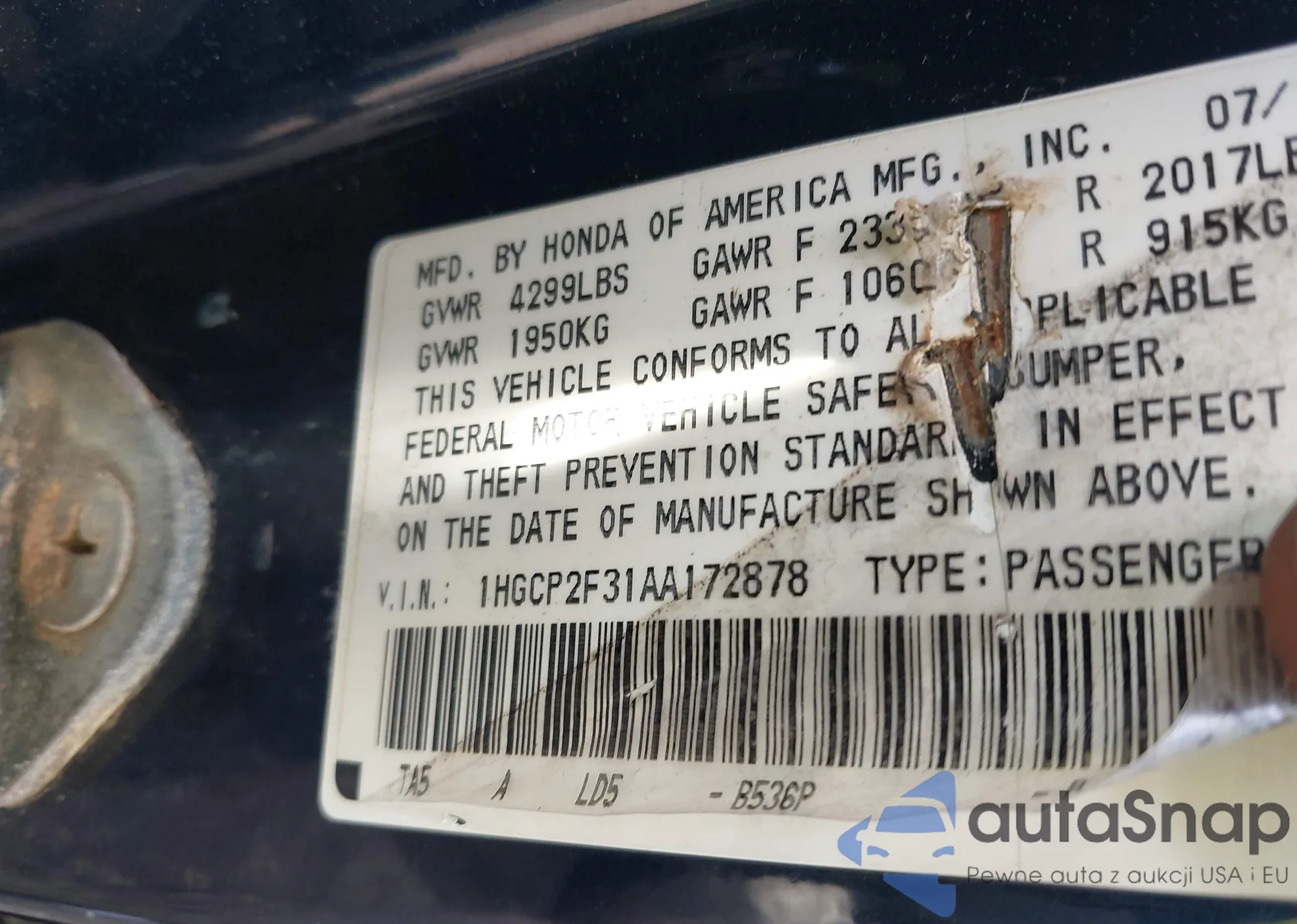 • VIN GHD5UB246162G0000