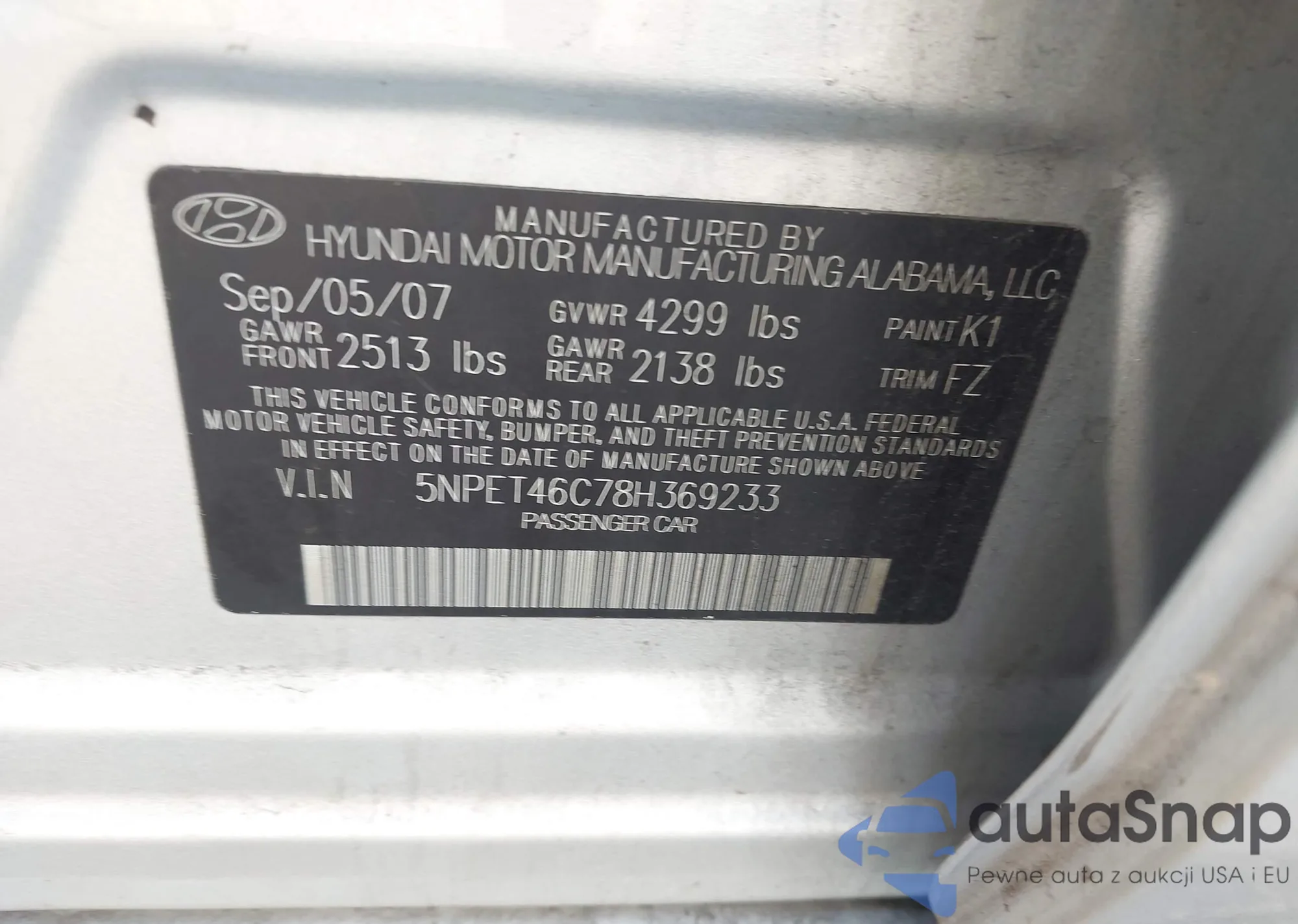 • VIN 5NPET46C78H369233