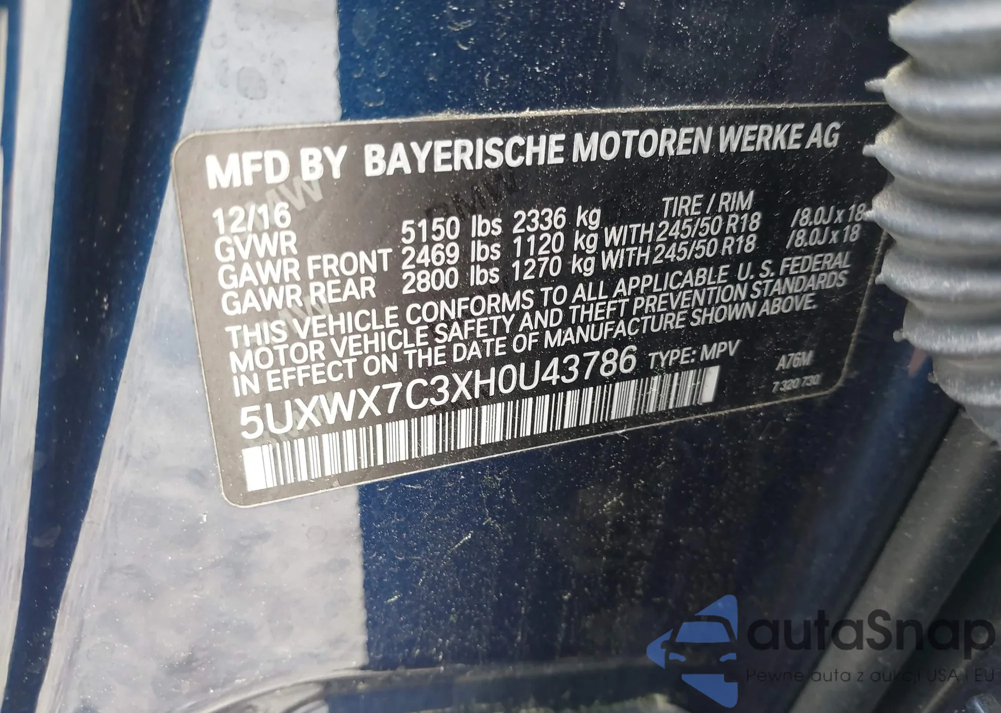 • VIN 5UXWX7C3XH0U43786