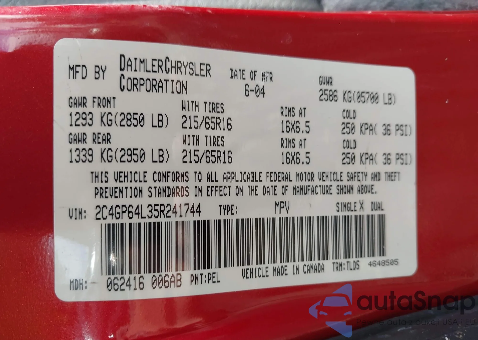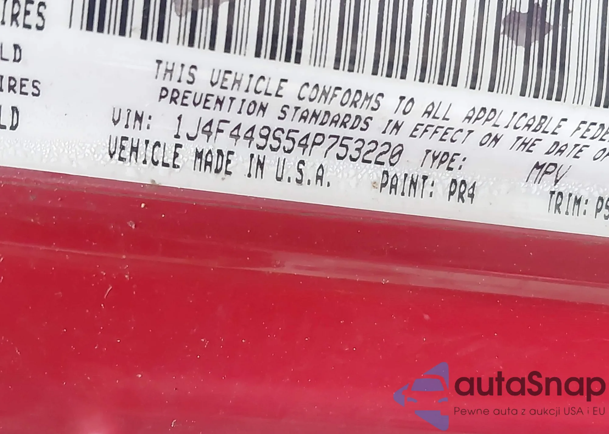LOT: 43161733 VIN: IJ4F449S54P753220