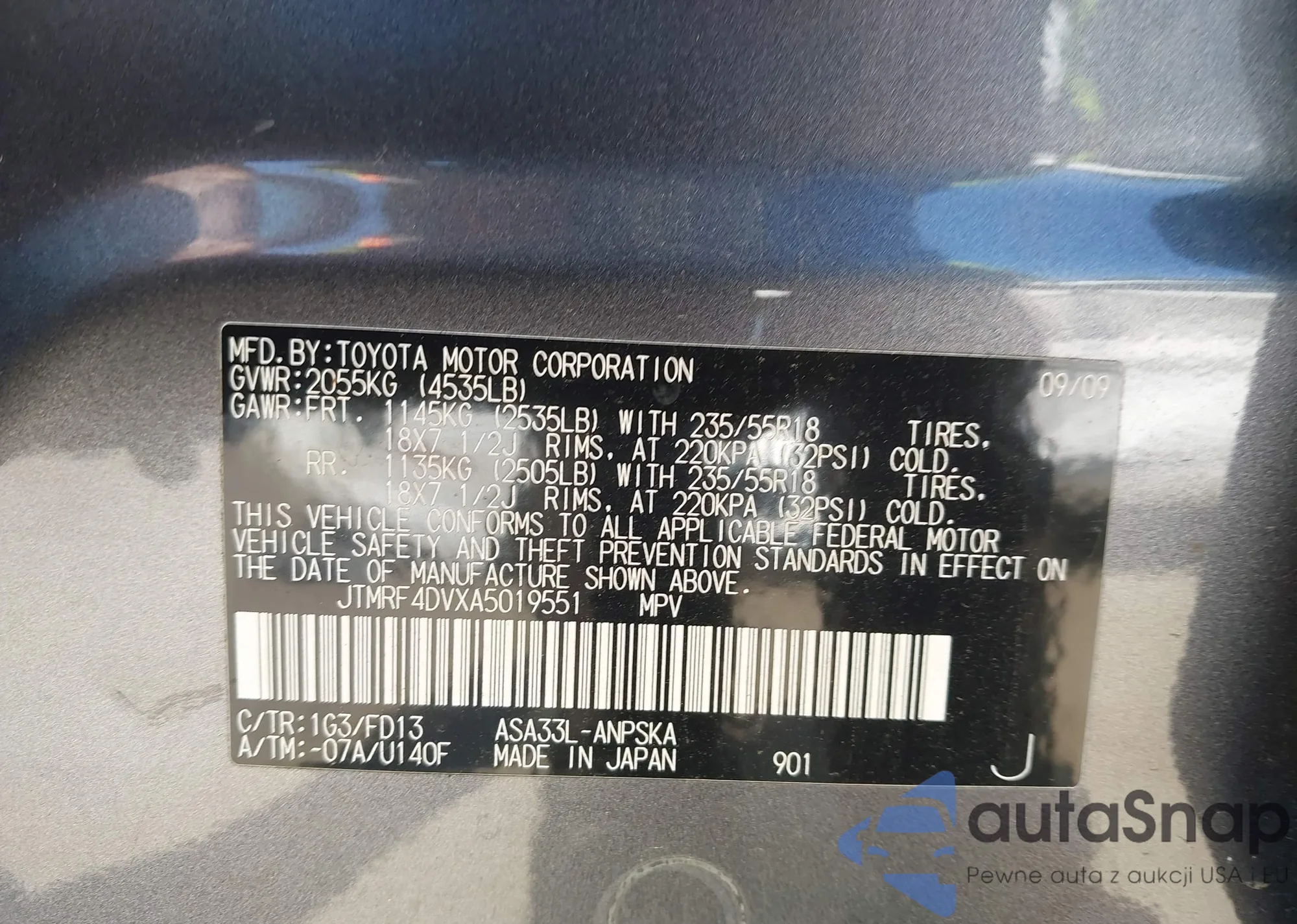 • VIN JTMRF4DVXA5019551