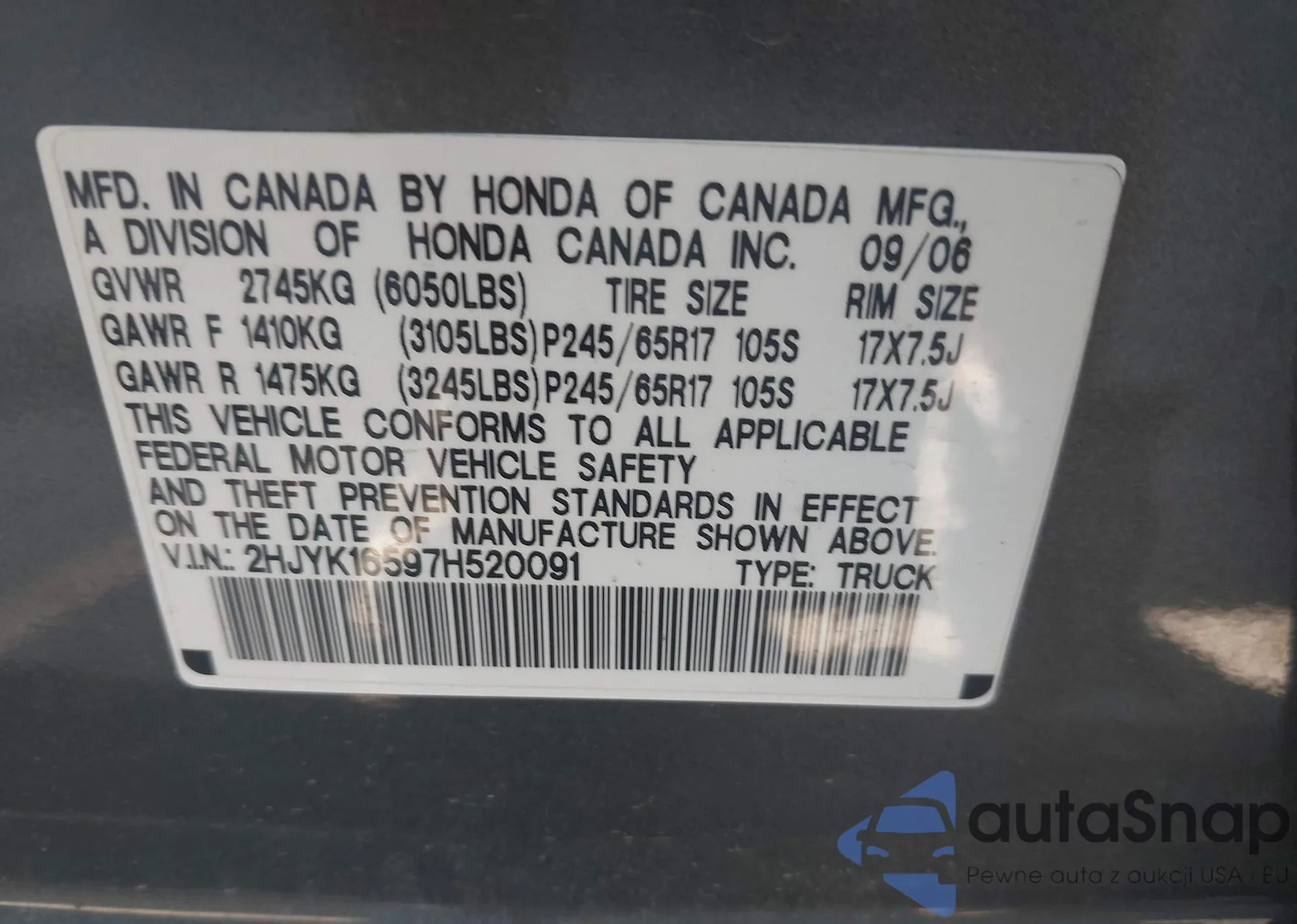 LOT: 42721452 VIN: 1J8HR58P59C525020