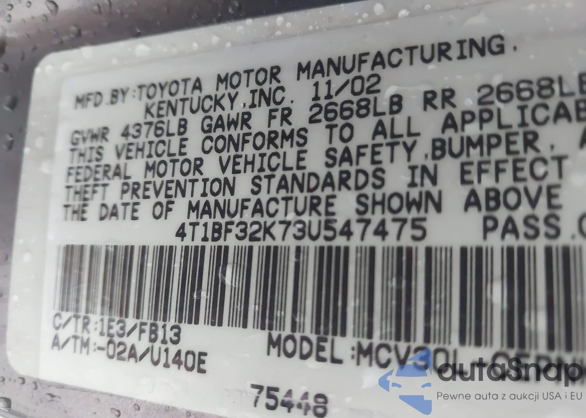 • VIN 4T1BF32K73U547475