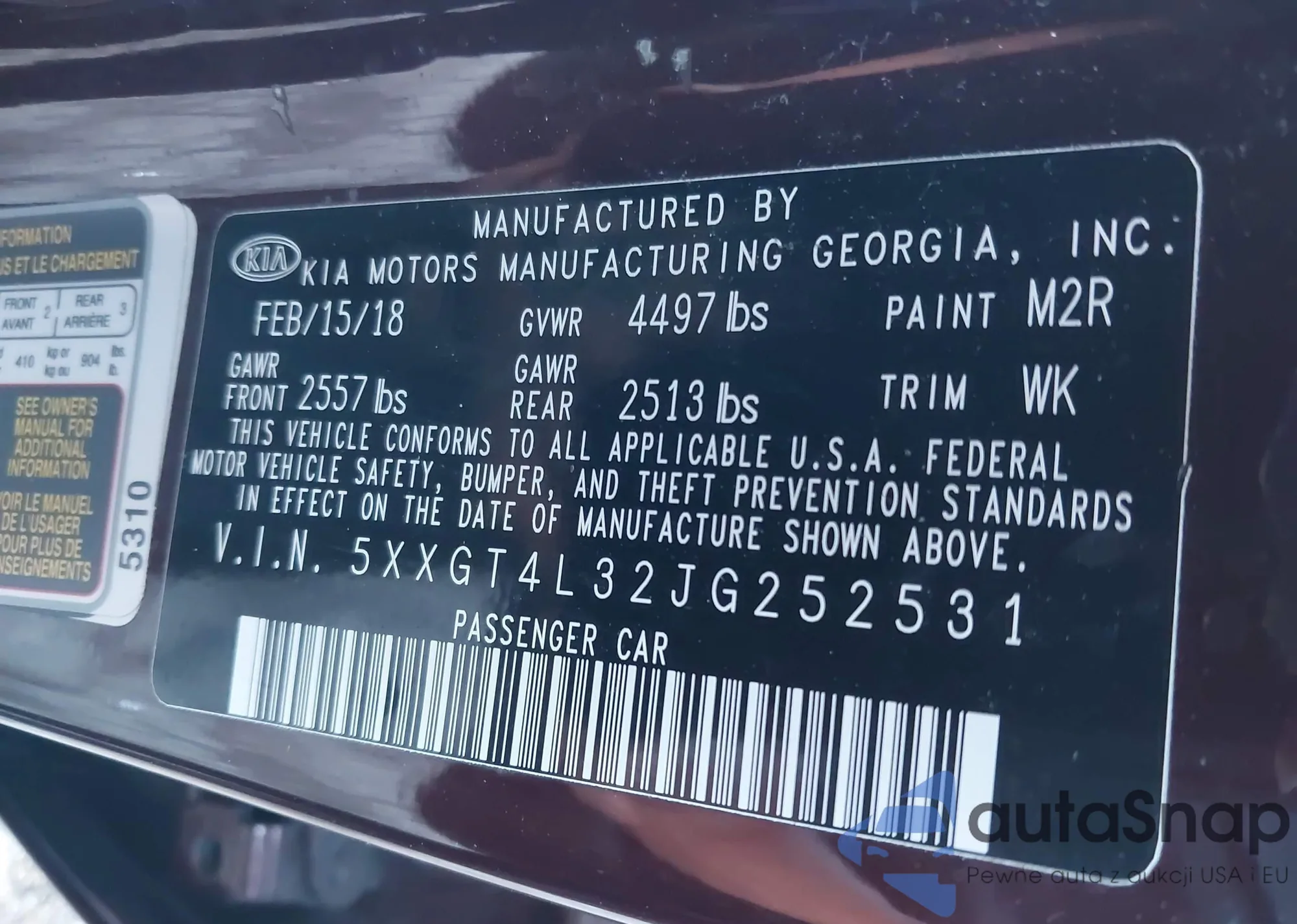 • VIN 5XXGT4L32JG252531