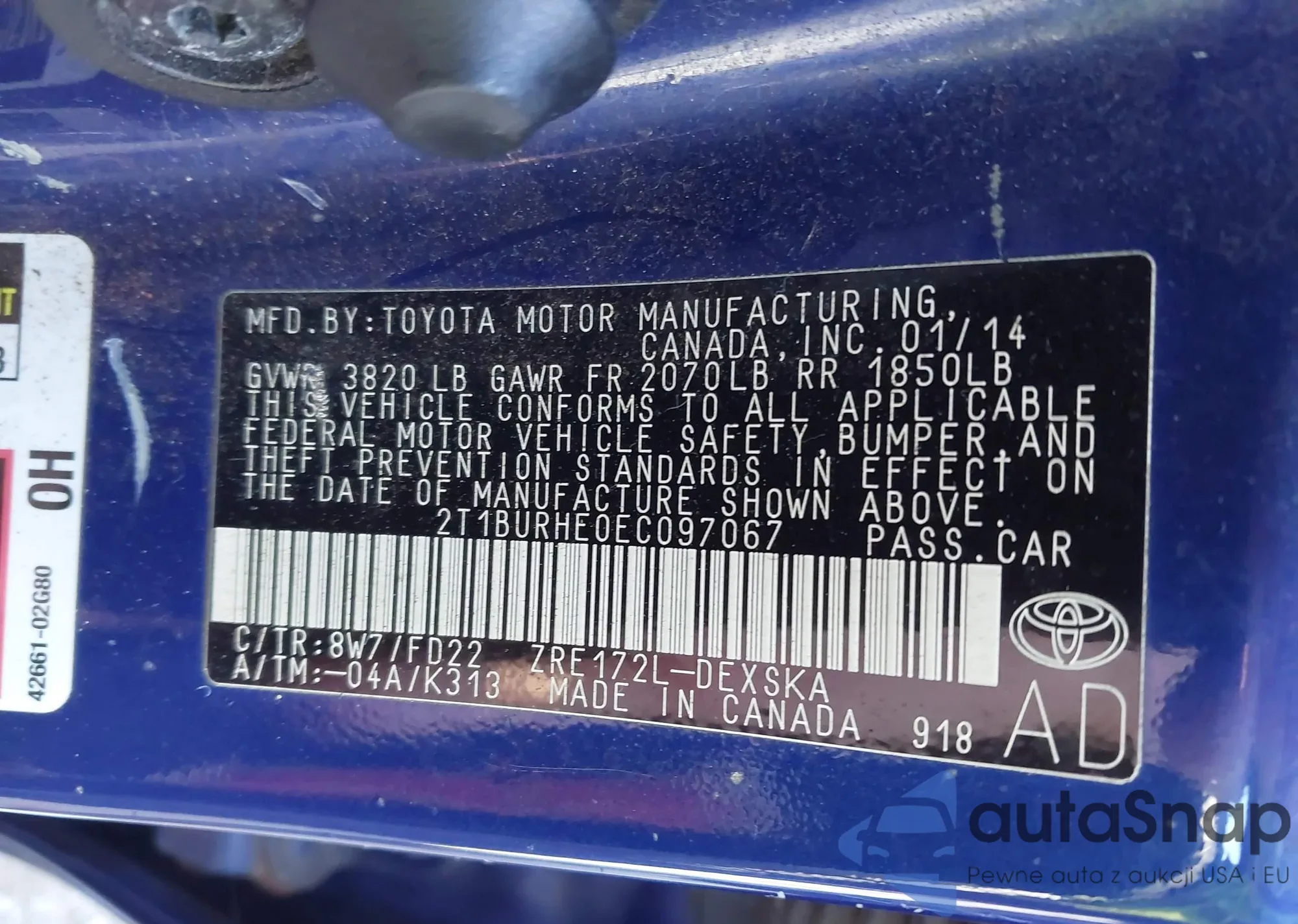 • VIN 2T1BURHE0EC097067