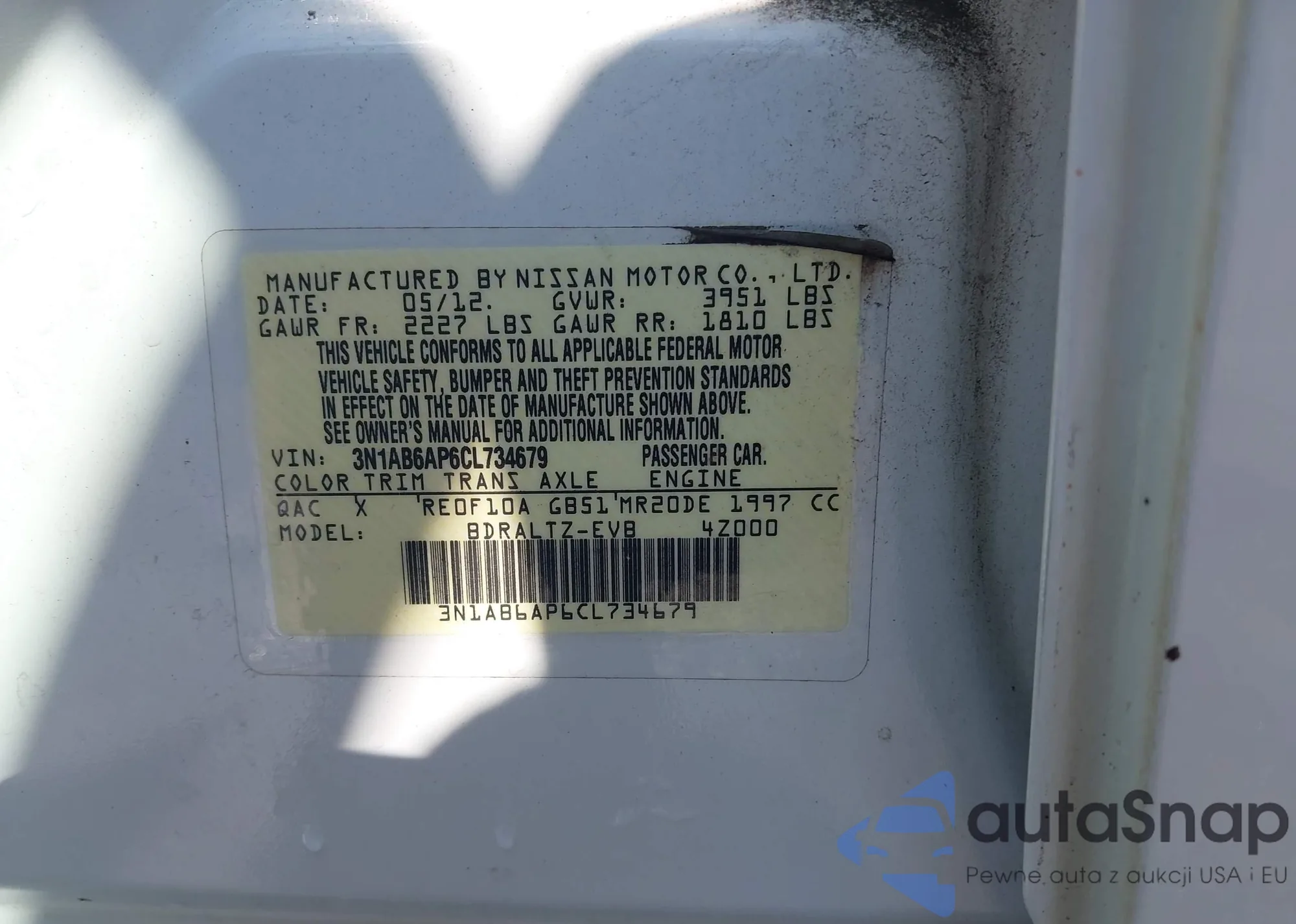 • VIN 3N1AB6AP6CL734679