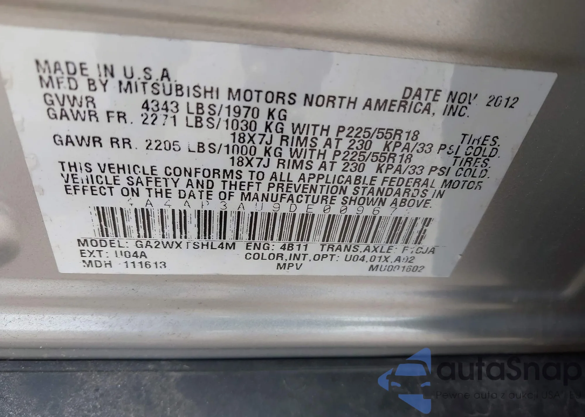LOT: 43284065 VIN: 4A4AP3AU9DE009672