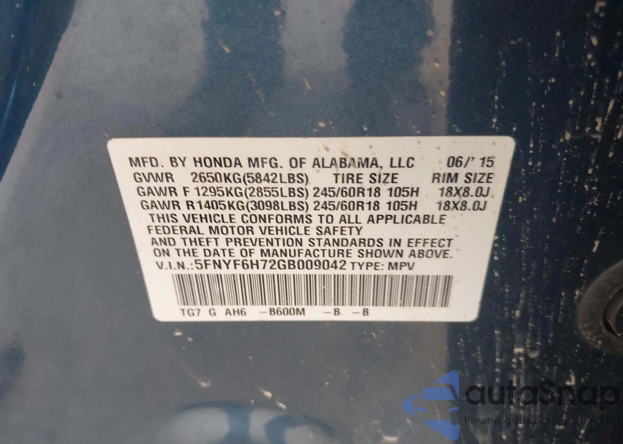 • VIN 5FNYF6H72GB009042