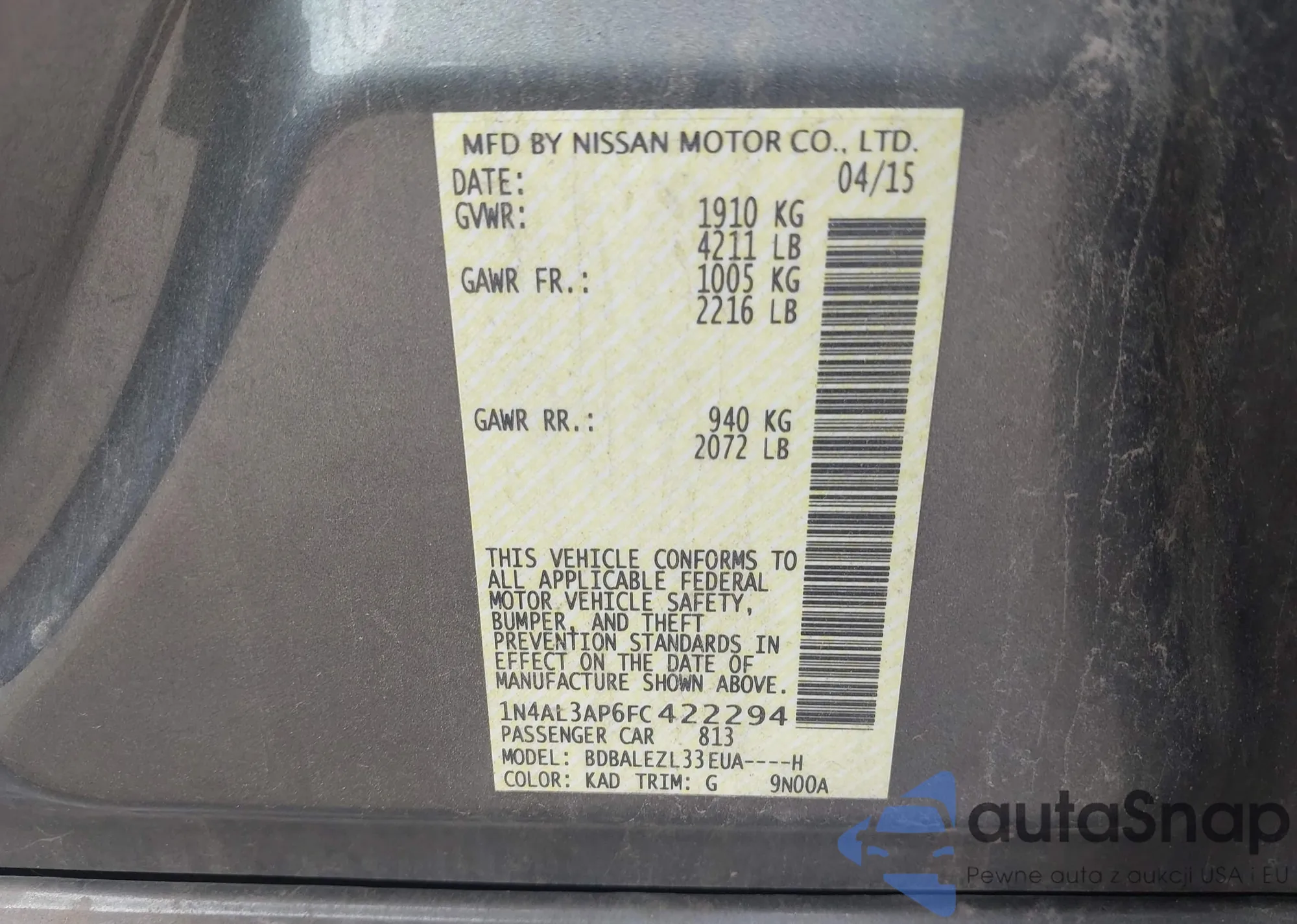 LOT: 43057065 VIN: 1N4AL3AP6FC422294