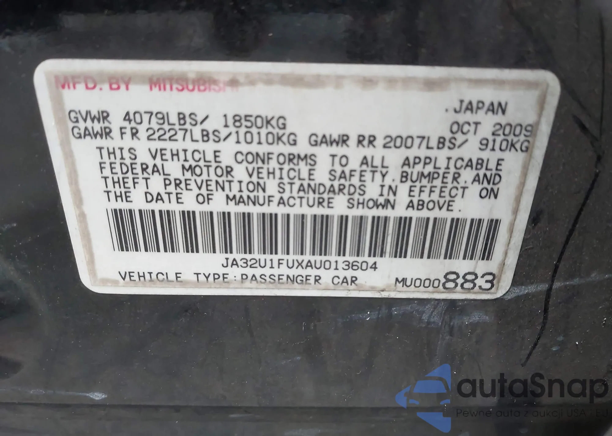 LOT: 43075024 VIN: JA32U1FUXAU013604