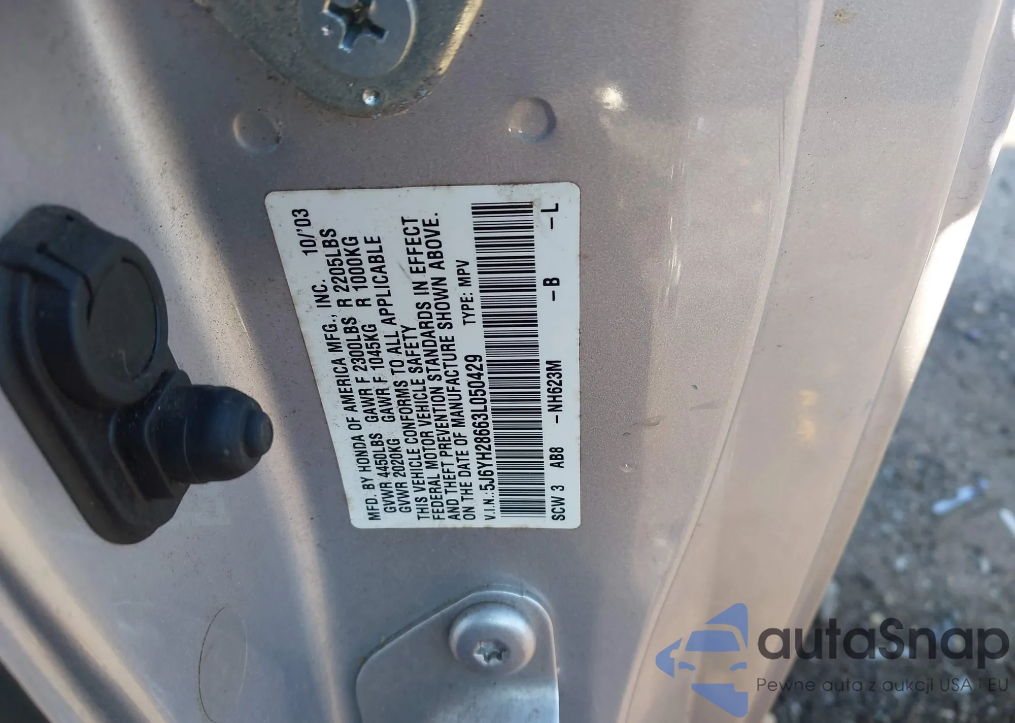 LOT: 43115476 VIN: 5J6YH28663L050429