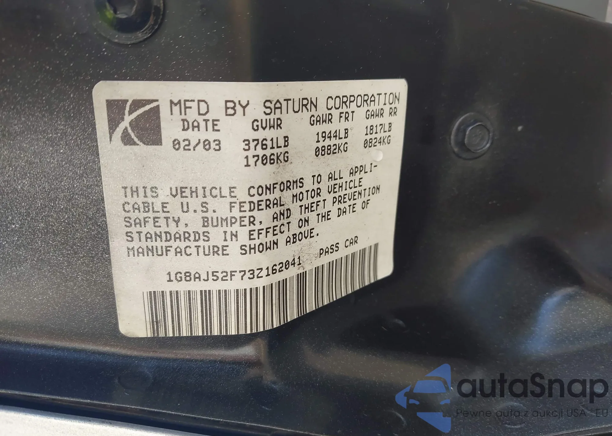 • VIN 1G8AJ52F73Z162041