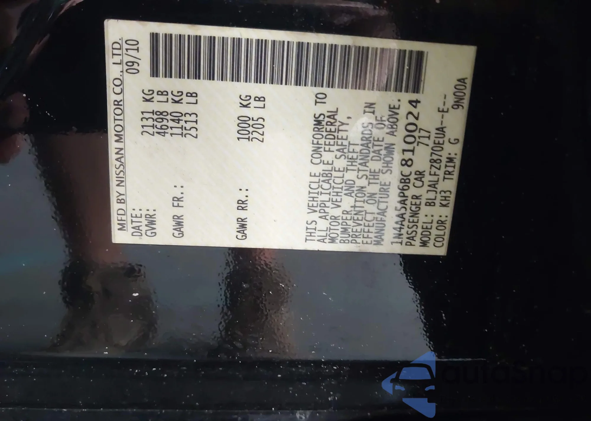 • VIN 1N4AA5AP6BC810024