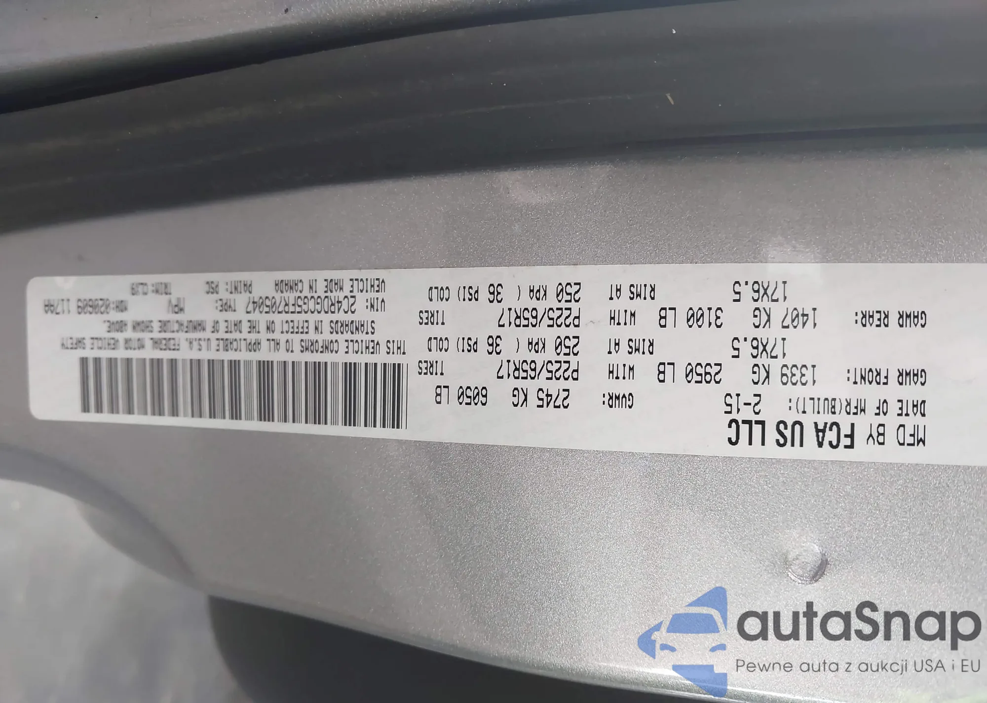 • VIN 2C4RDGCG5FR705047