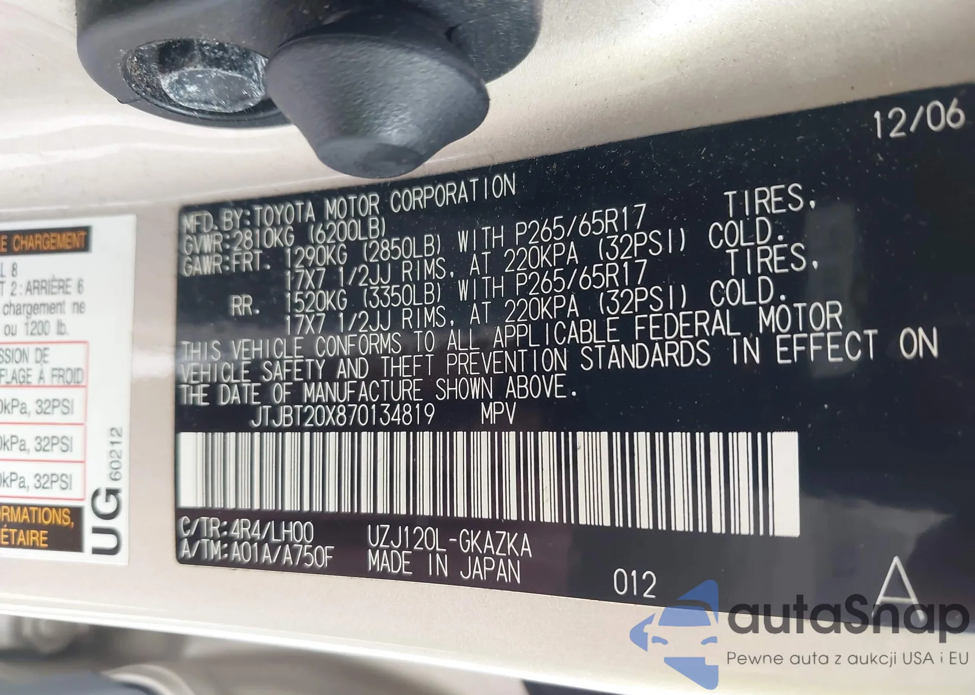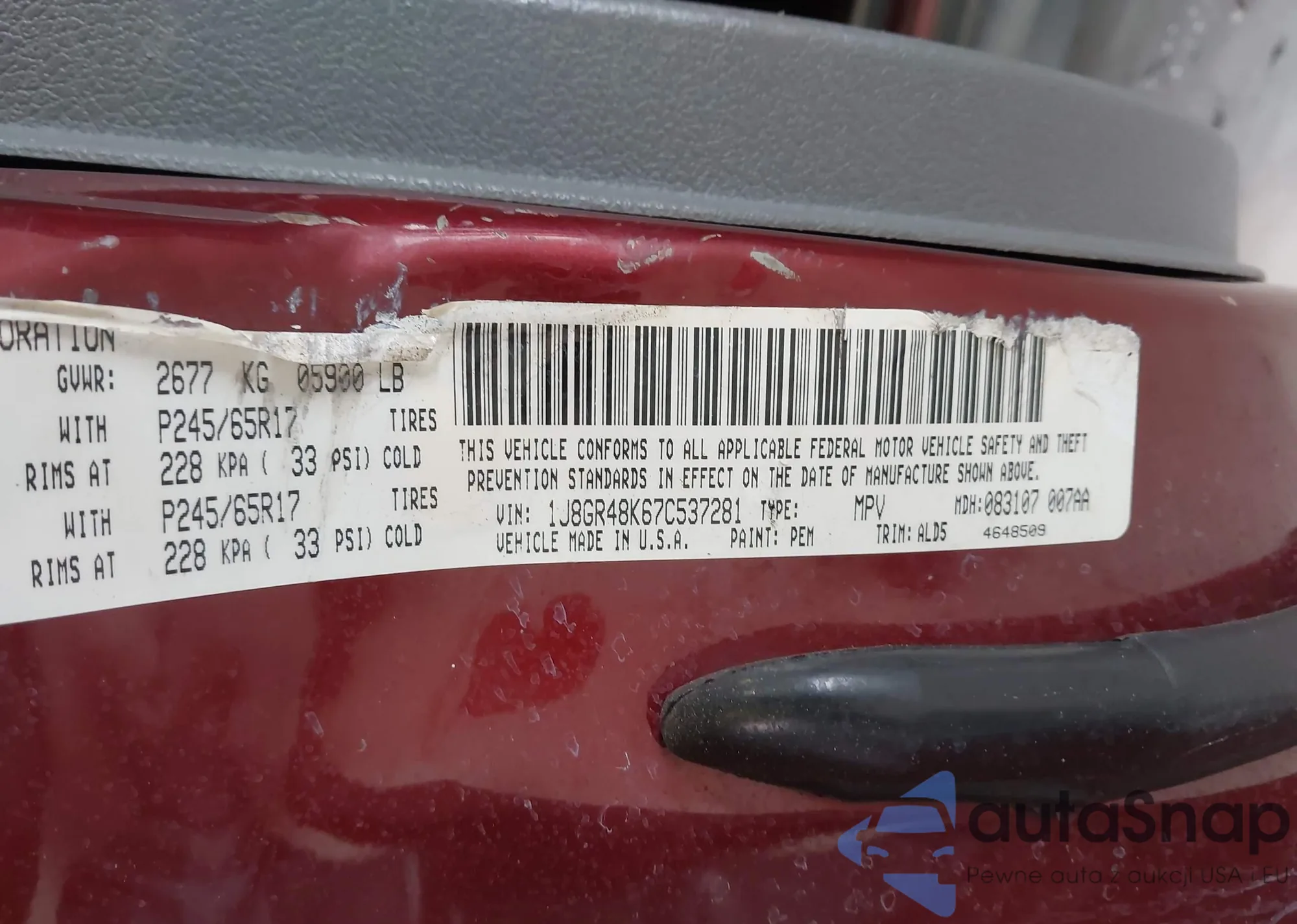 LOT: 42983700 VIN: 1J8GR48K67C537281
