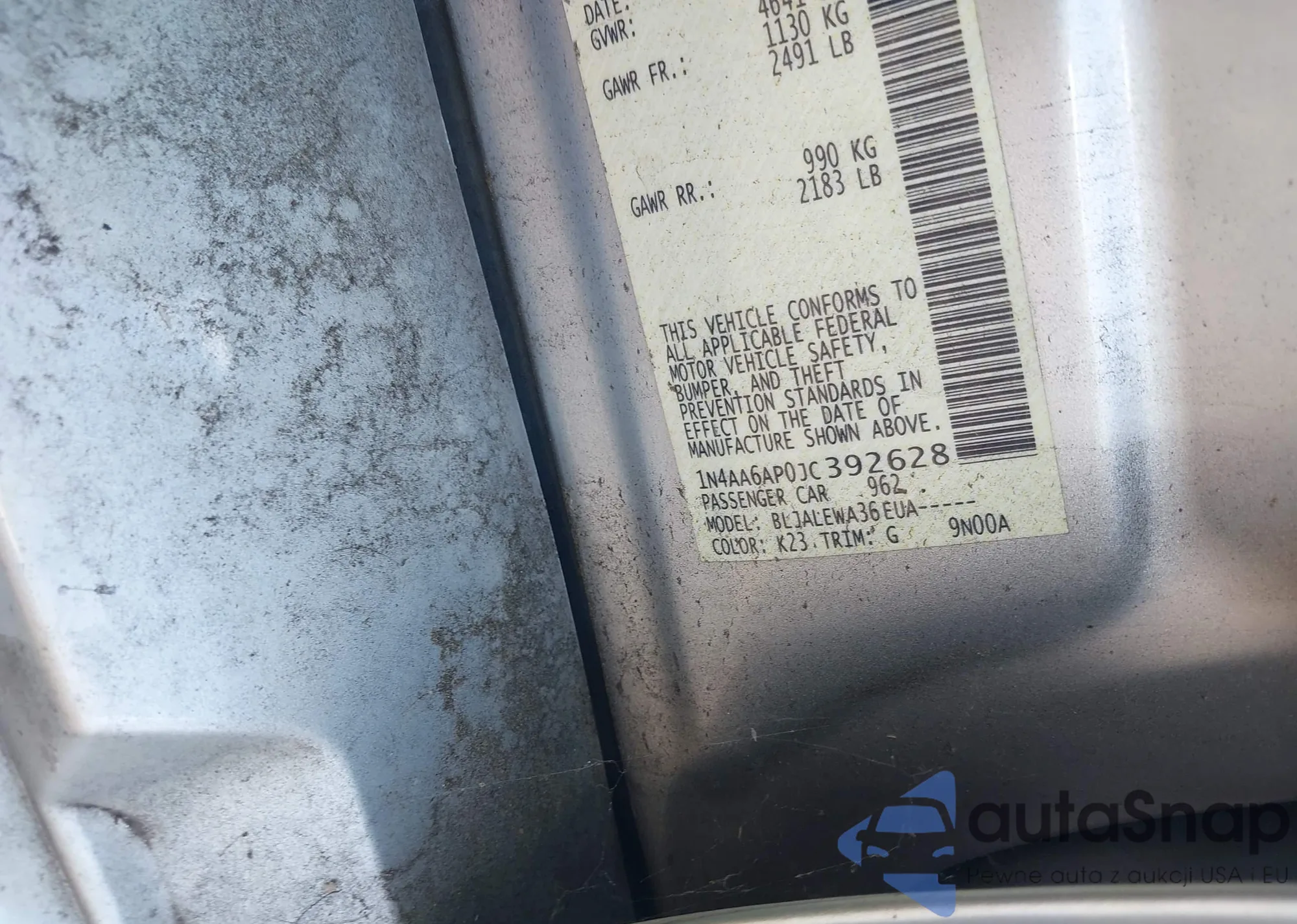 • VIN 1N4AA6AP0JC392628