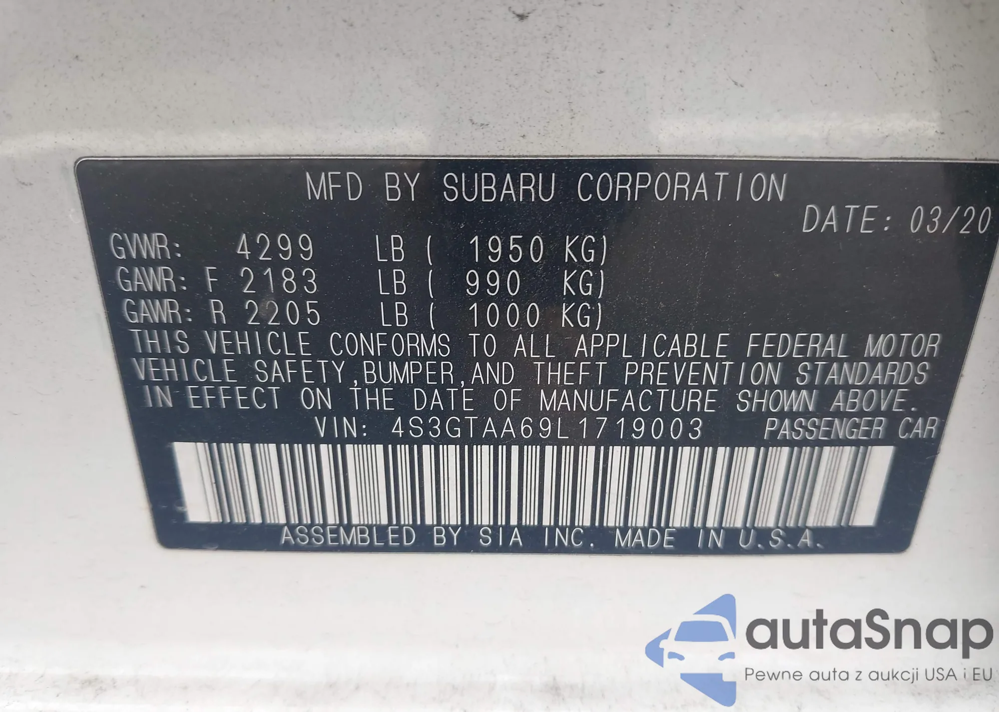 • VIN 4S3GTAA69L1719003