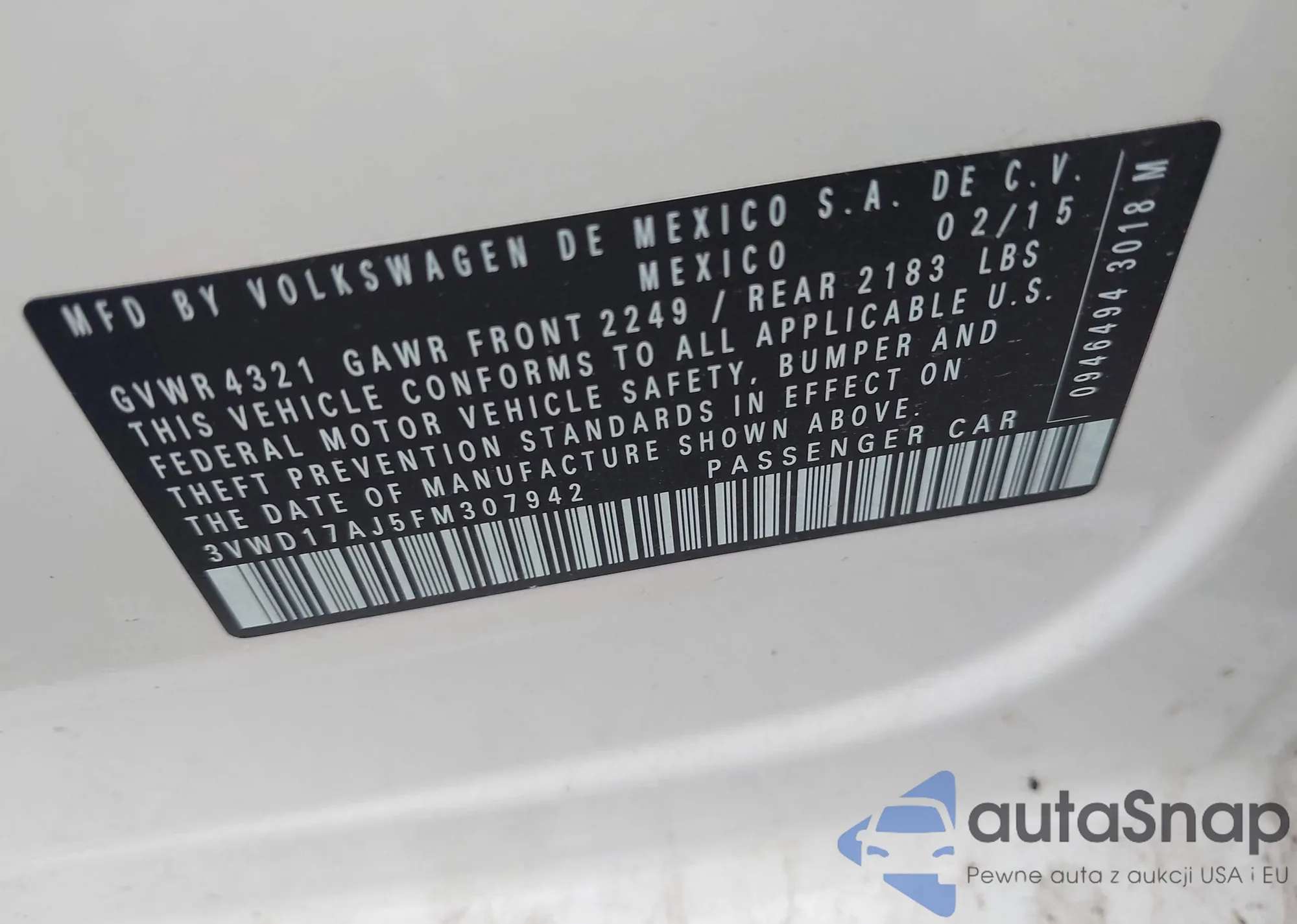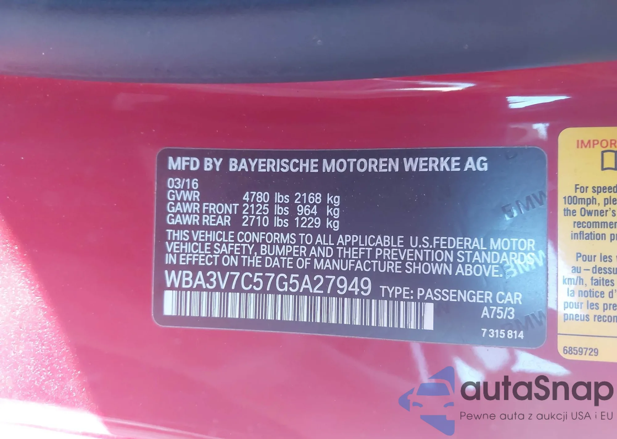 • VIN WBA3V7C57G5A27949