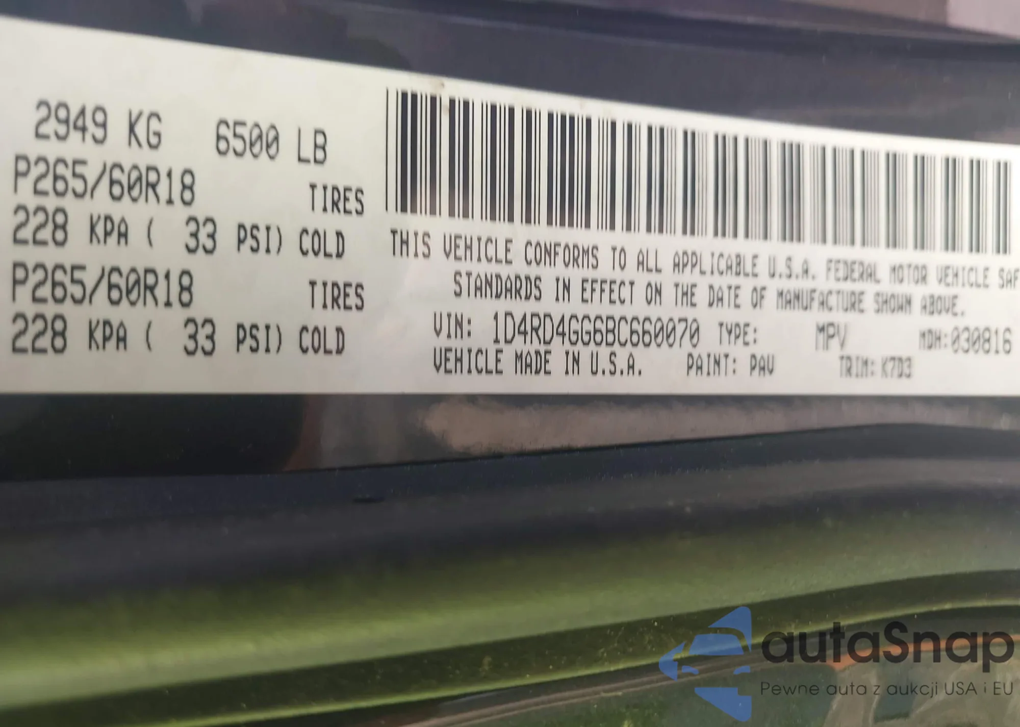 • VIN 1C4RJFAG7CC161760