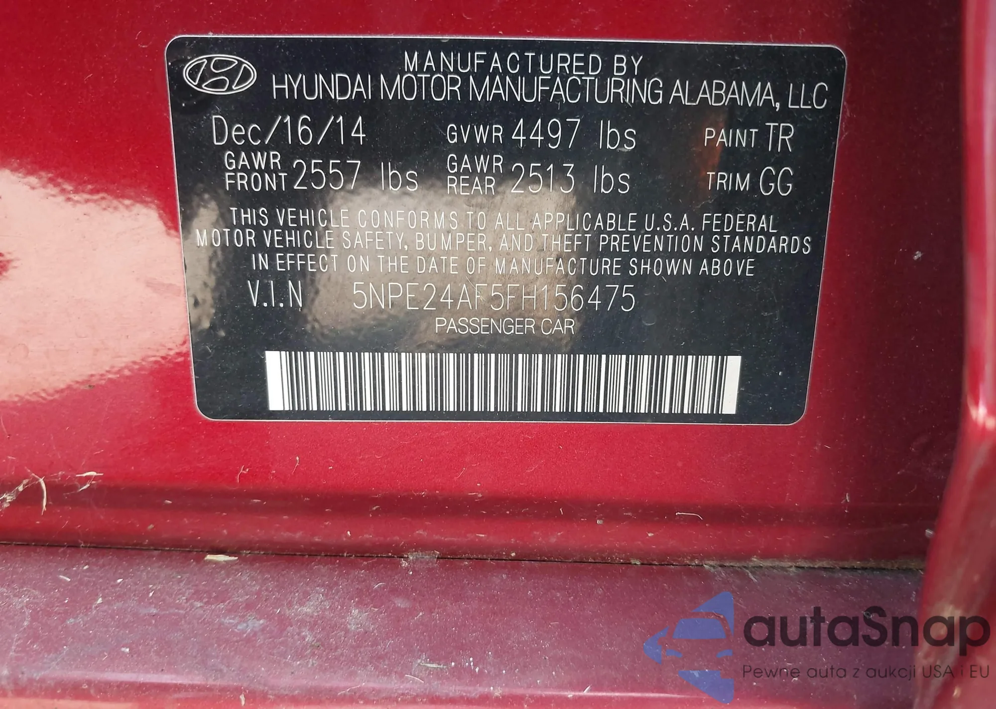 • VIN 5NPE24AF5FH156475