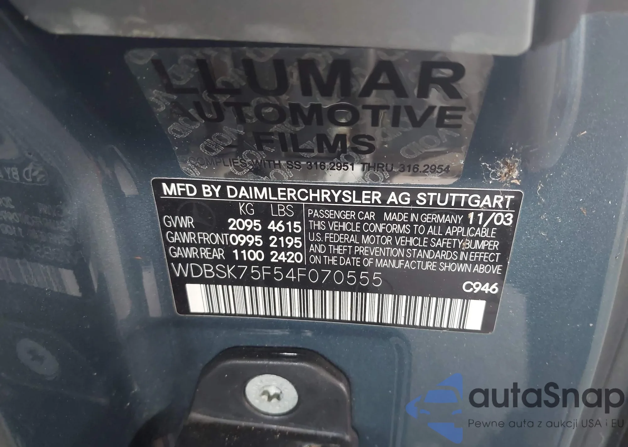 • VIN WDBSK75F54F070555