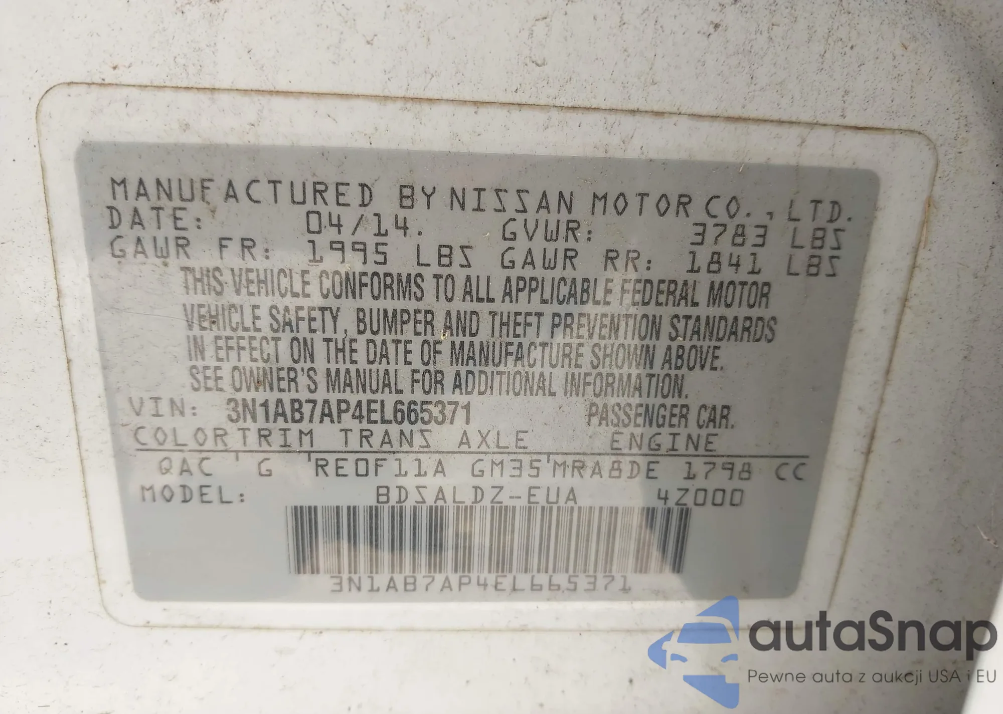 • VIN 3N1AB7AP4EL665371