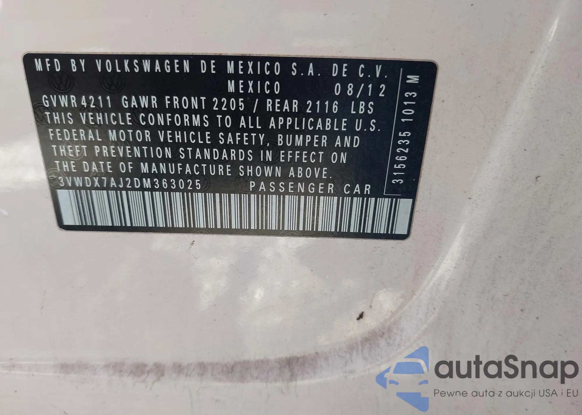 • VIN 3VWAL71K19M160058